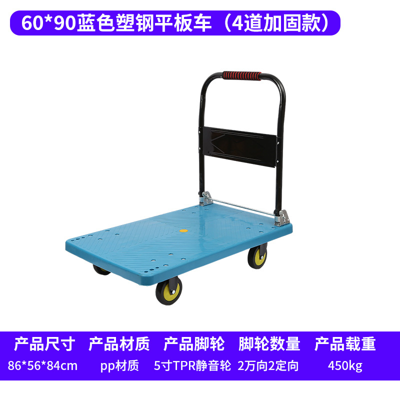 60-90蓝色塑钢平板车(4道加固款)