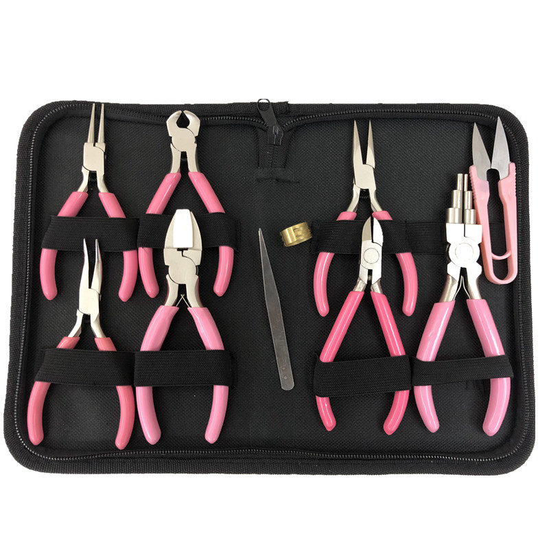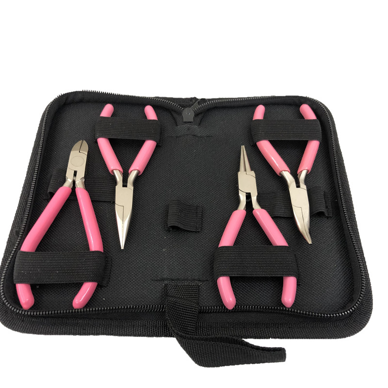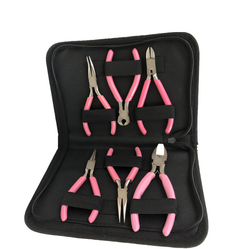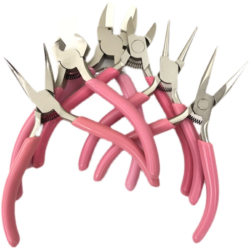 高档粉色防锈弹簧款6件套 尖斜圆弯顶塑头钳