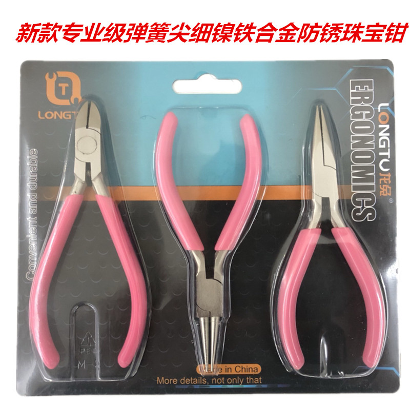 高档粉色防锈弹簧尖款嘴钳 尖嘴无齿的不伤首