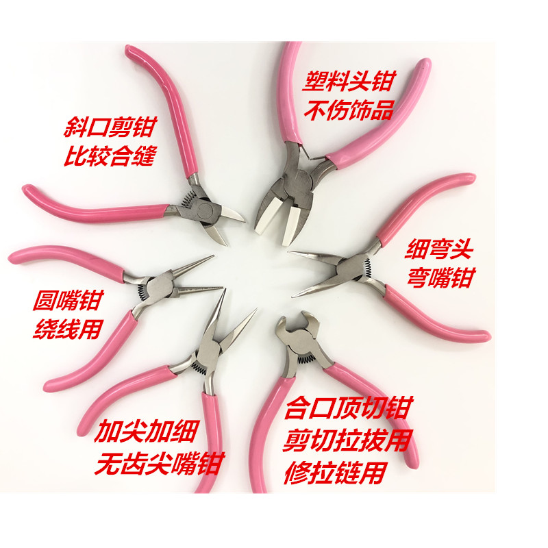 高档粉色防锈弹簧款弯嘴钳 (无齿的弯的