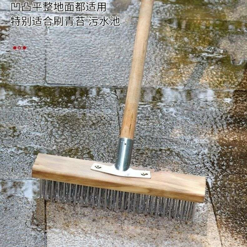 1.16m*0.32m不锈钢丝刷整套(实木杆-长柄钢丝刷刷青苔效果很棒