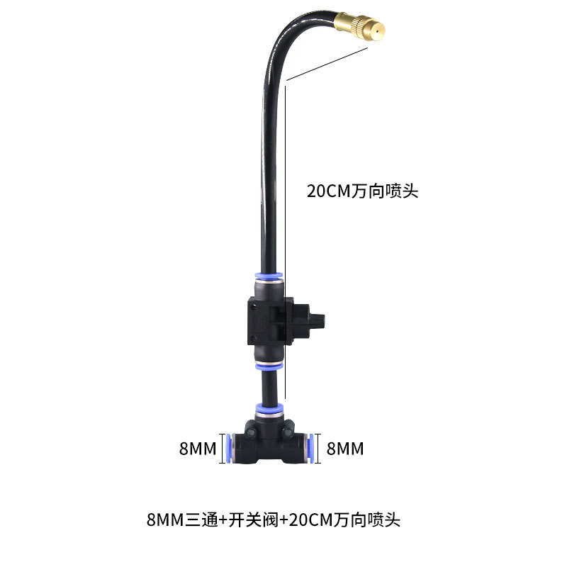 8mm三通+开关阀+20cm万向喷头
