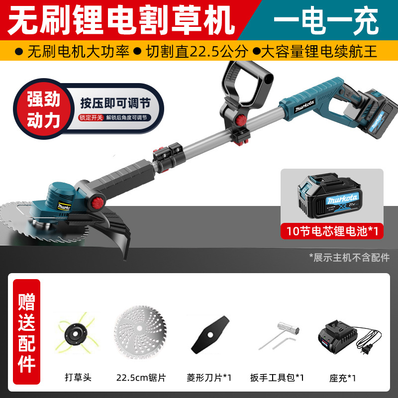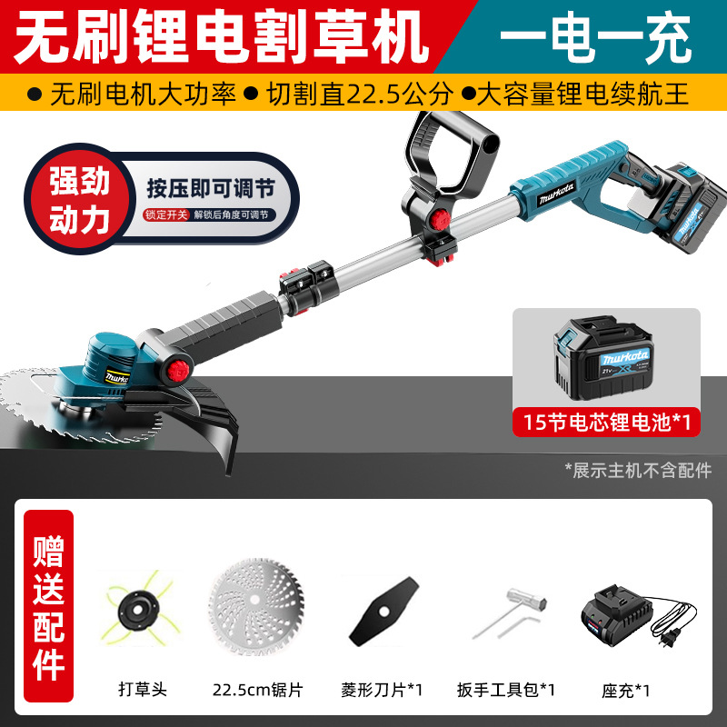 无刷锂电割草机【三刀头+裸机】6000毫安一电
