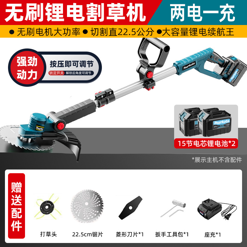 无刷锂电割草机【三刀头+裸机】6000毫安两电