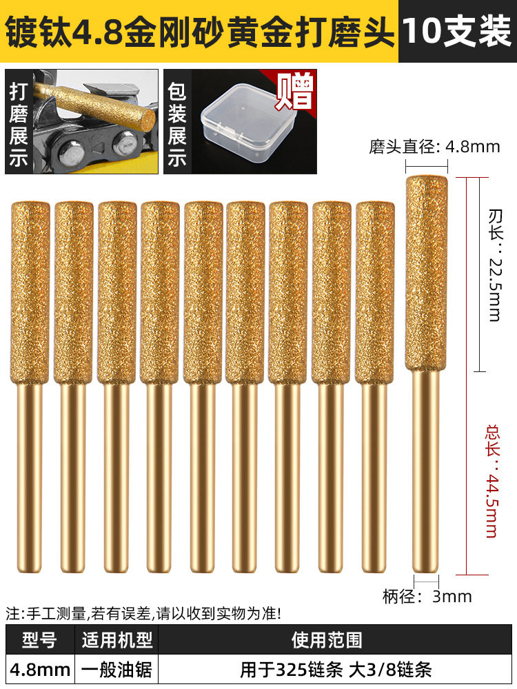 4.8mm镀钛黄金磨头【10支】 适合大部分油锯