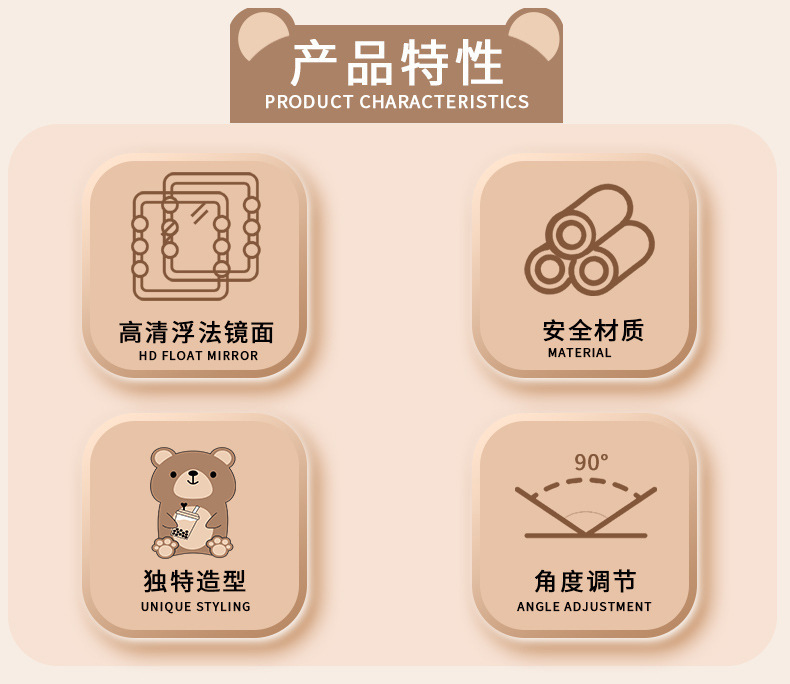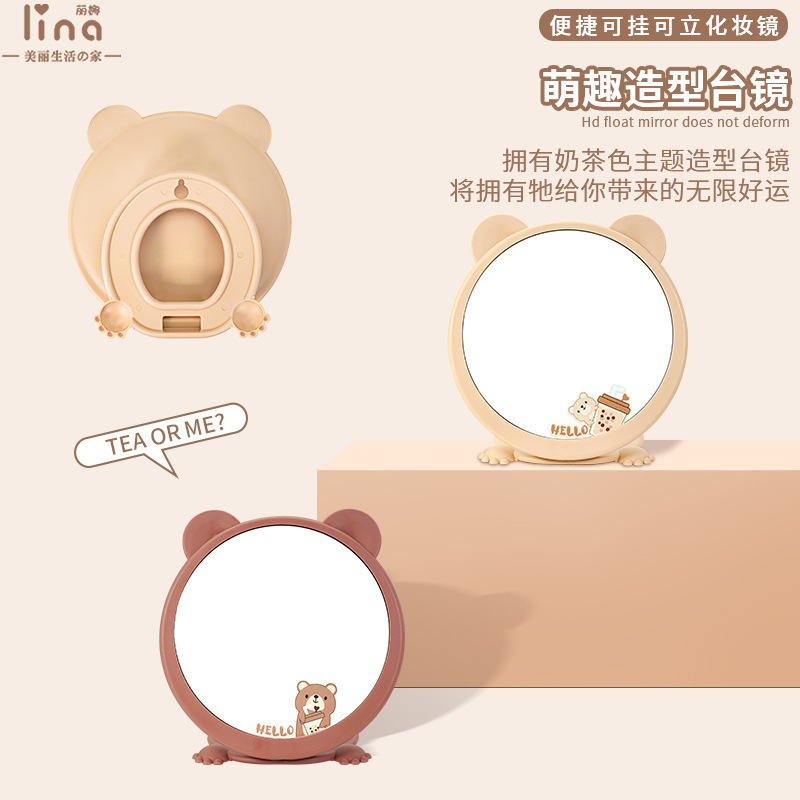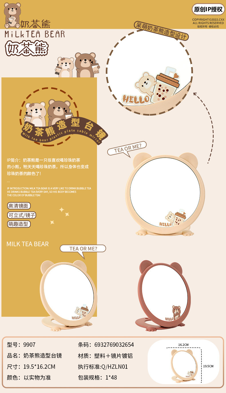 9907 milk bear modeling table mirror (milk tea color)