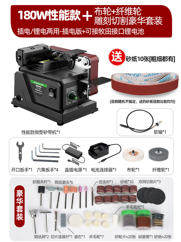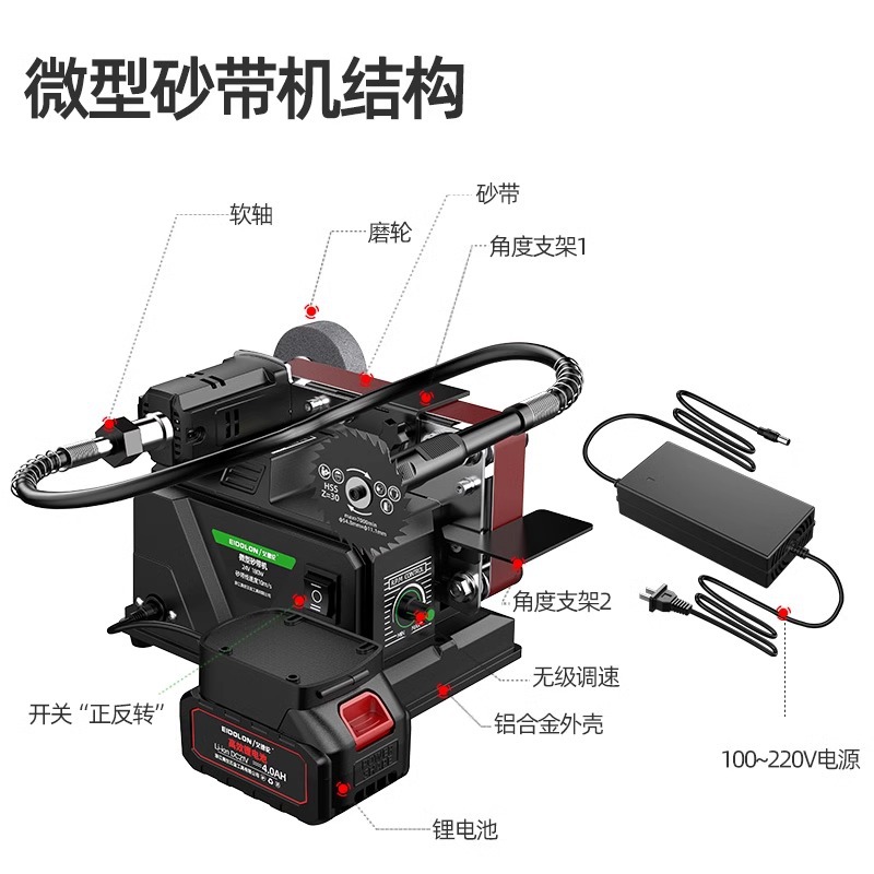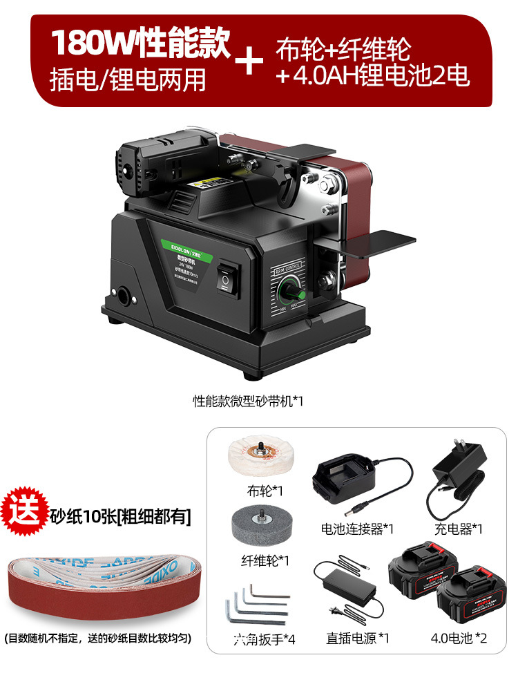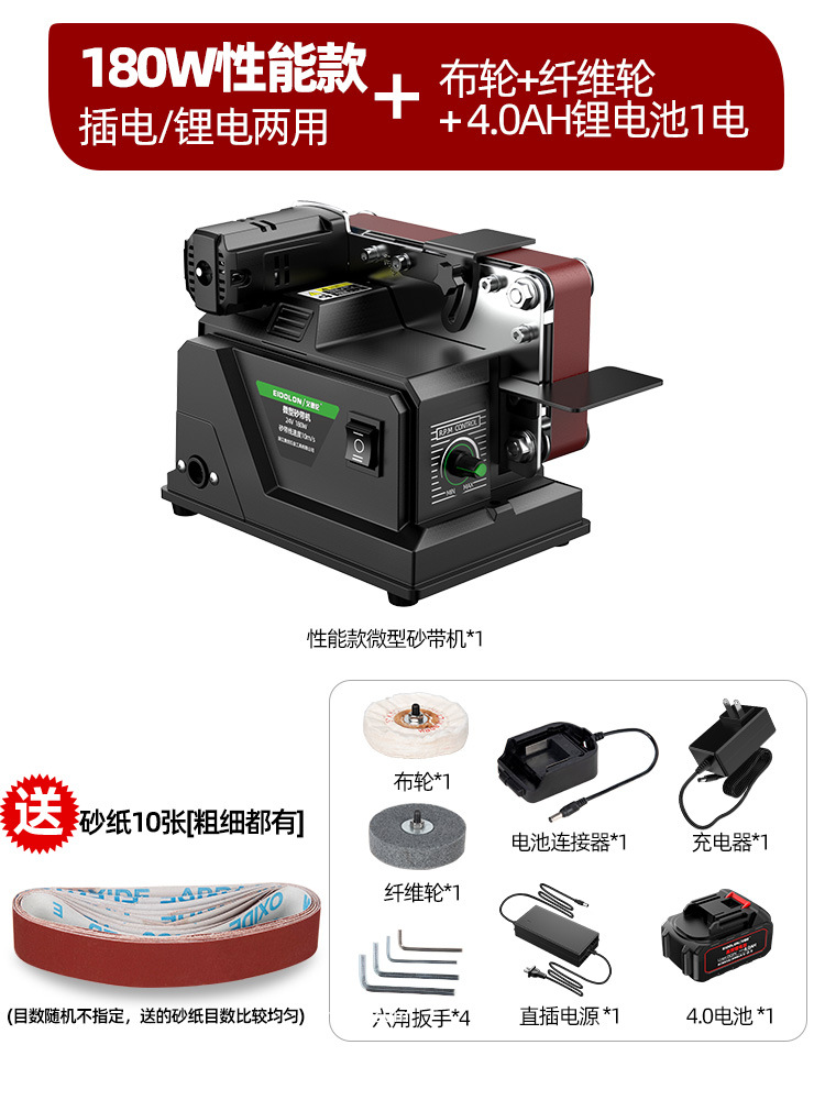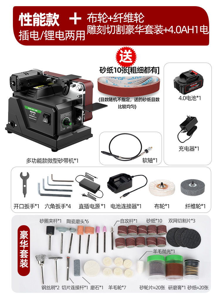 【微型家用款】插电充电两用砂带机4.0一电一充