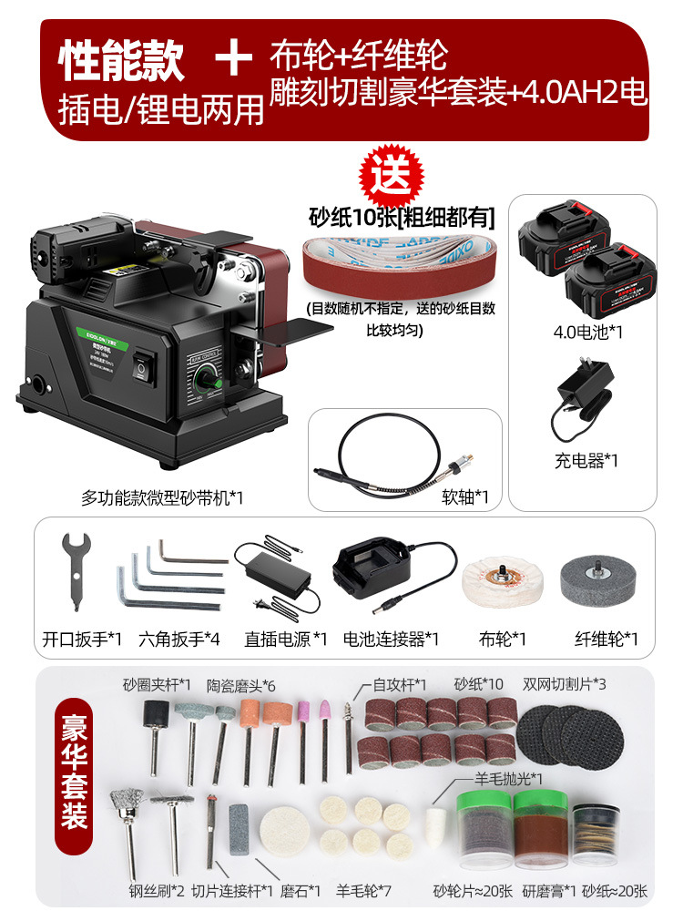 【性能旗舰款】插电充电两用砂带机豪华套装4.0一电一充