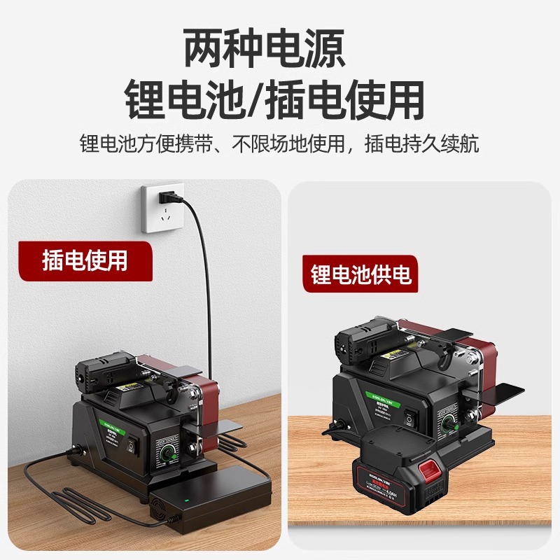 【性能旗舰款】插电充电两用砂带机 可用牧田接口电池