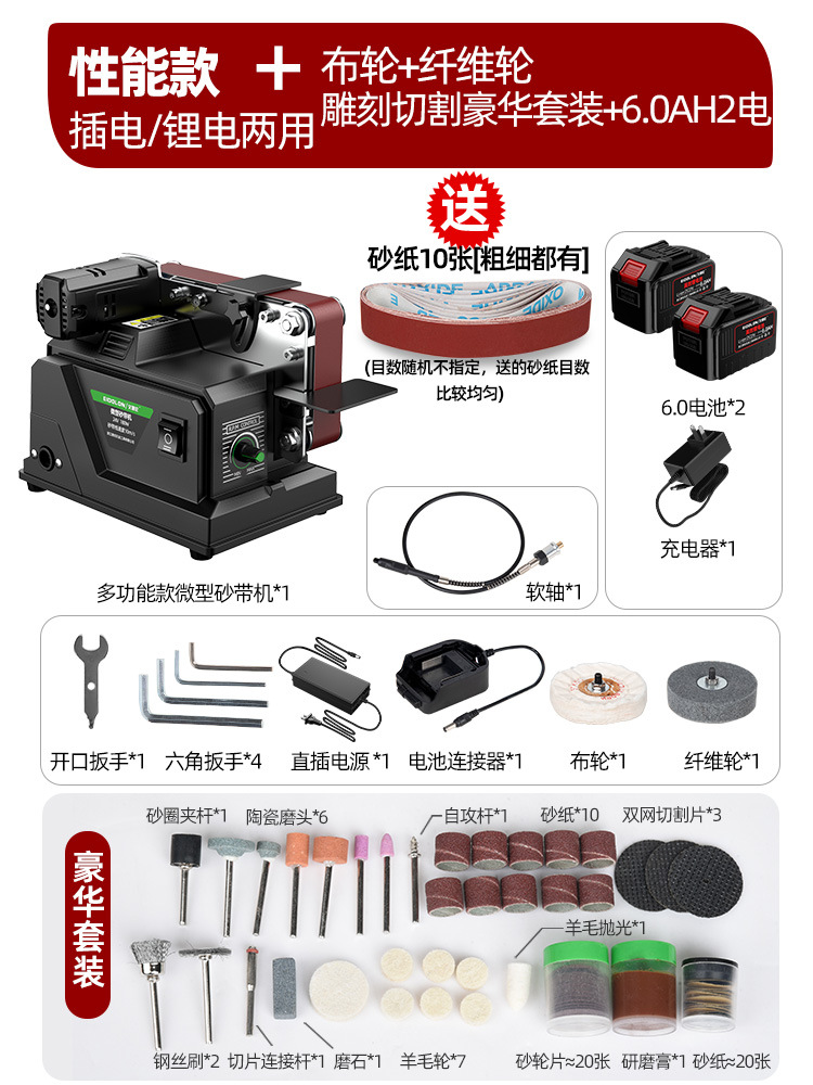 【性能旗舰款】插电充电两用砂带机豪华套装6.0两电一充