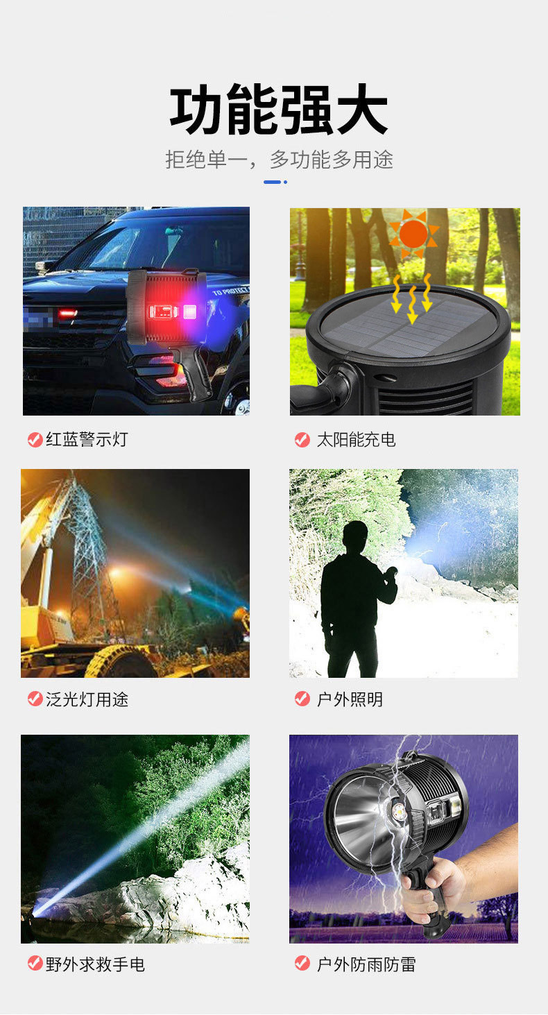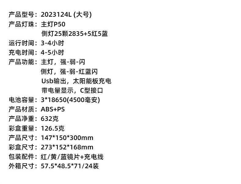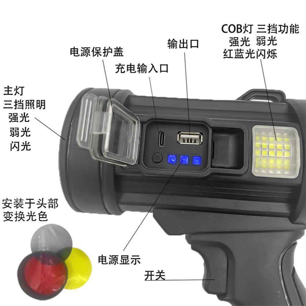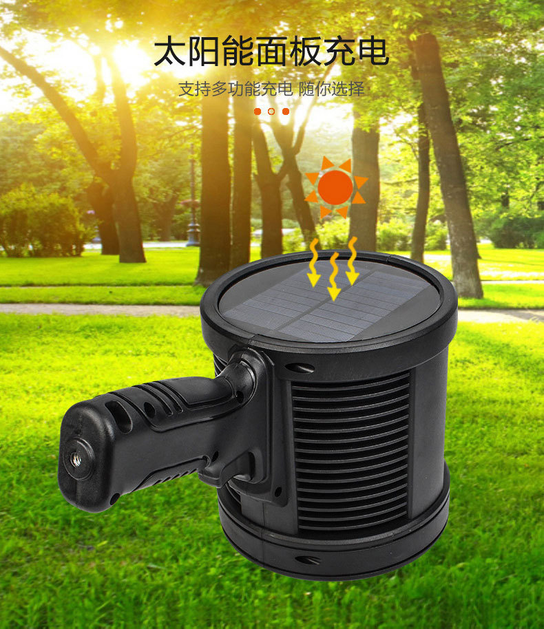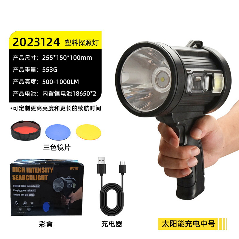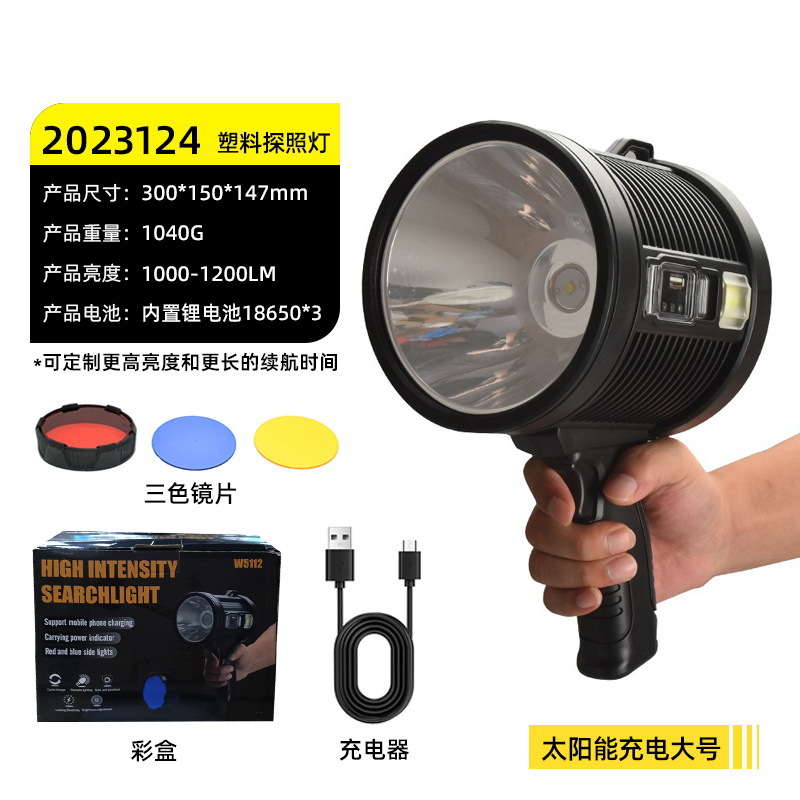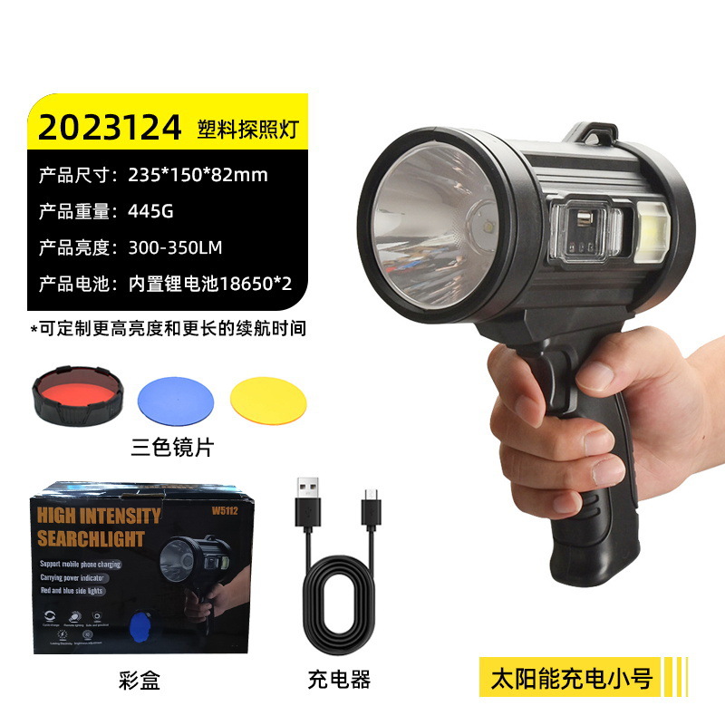 2023124 solar spotlight large size-p50 led beads +3 x 18650 batteries + usb cable + color box