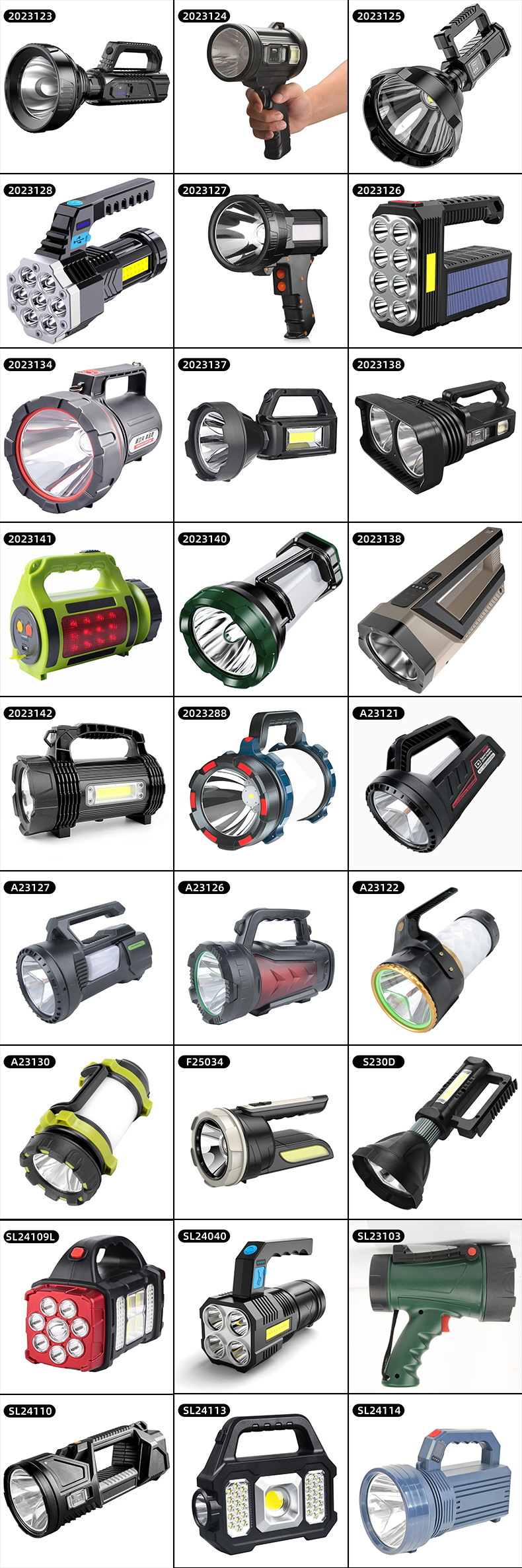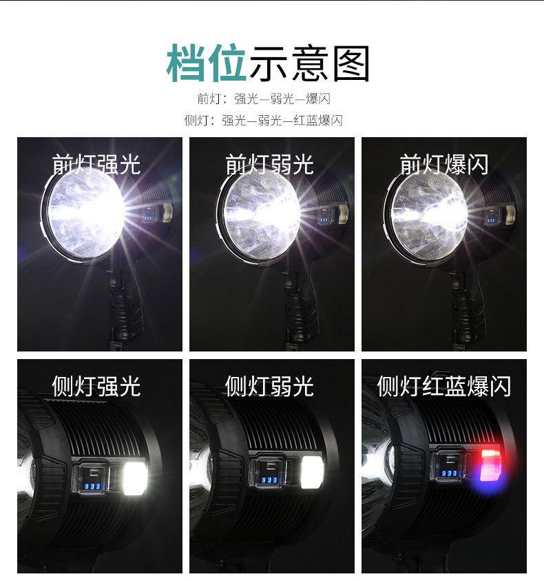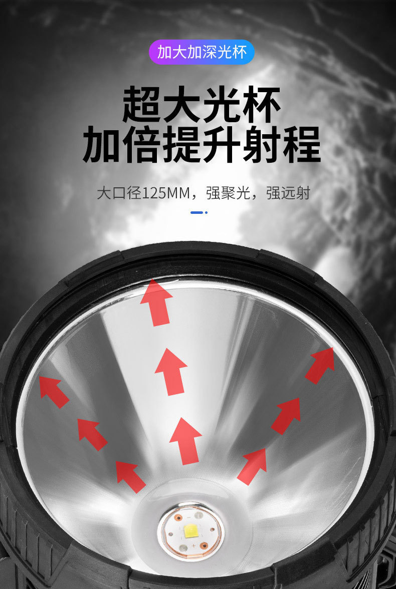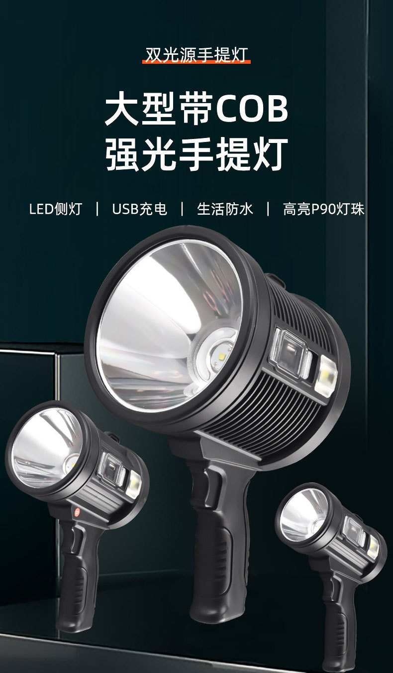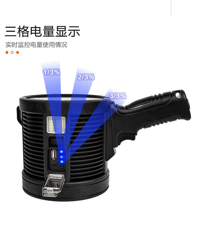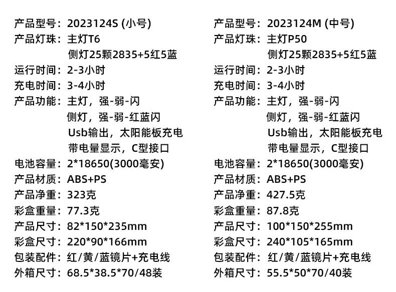 2023124 solar spotlight large size-p50 led beads +3 x 18650 batteries + usb cable + color box