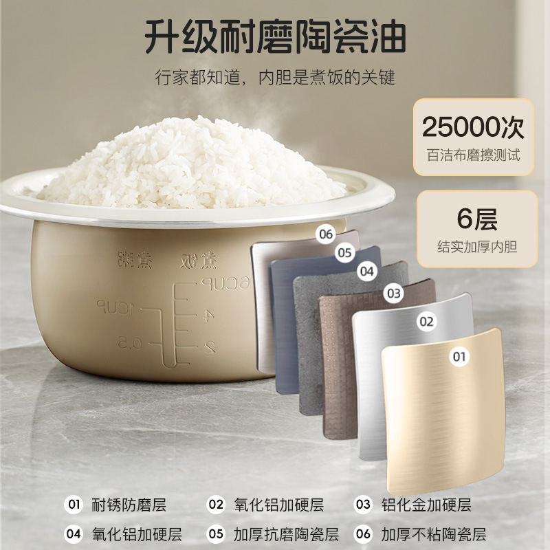 xishi rice cooker 4 liters (ceramic glaze non-stick liner + one-click cooking)