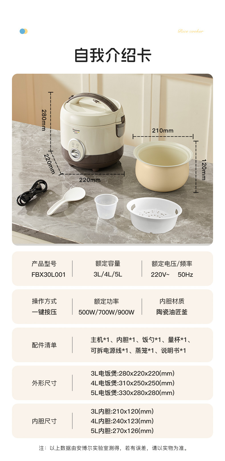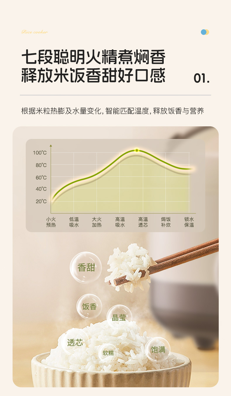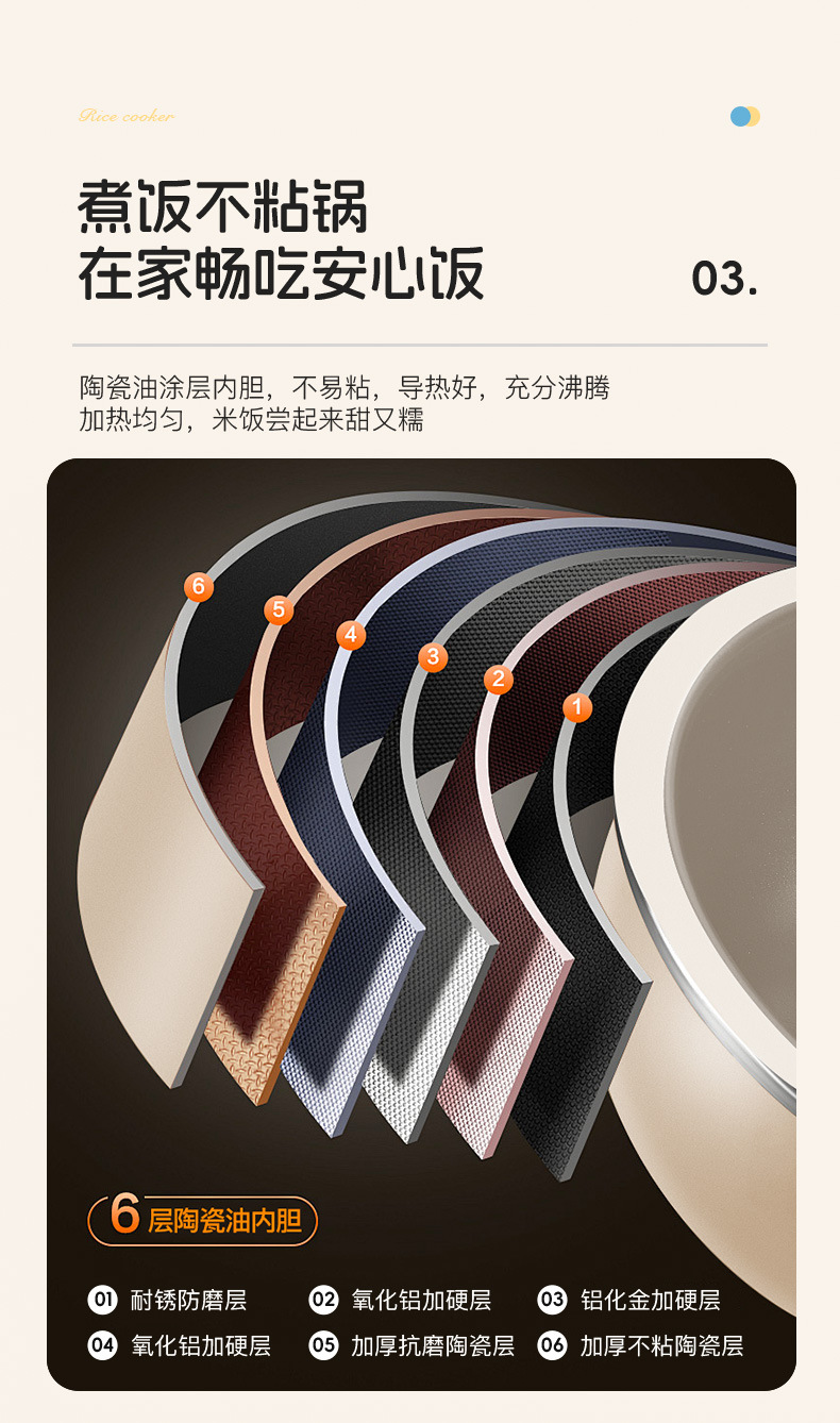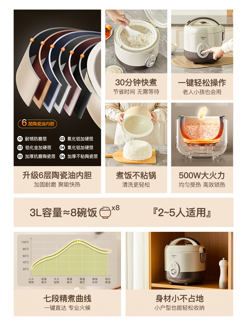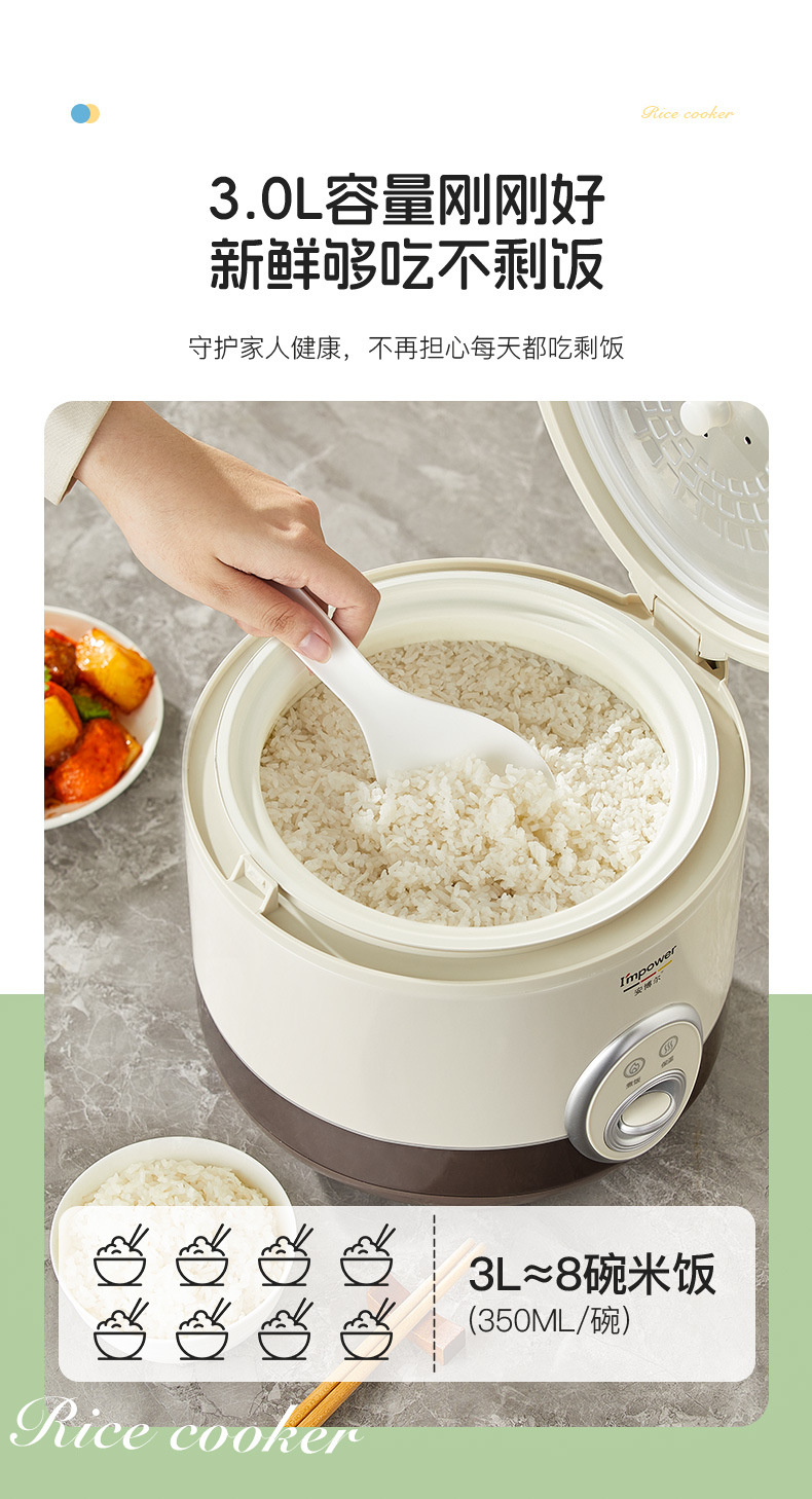 xishi rice cooker 3 liters (ceramic glaze non-stick liner + one-click cooking)