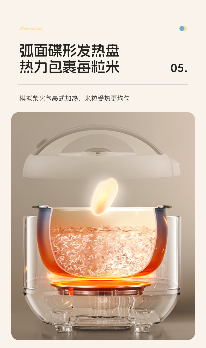 xishi rice cooker 5 liters (ceramic glaze non-stick liner + one-click cooking)