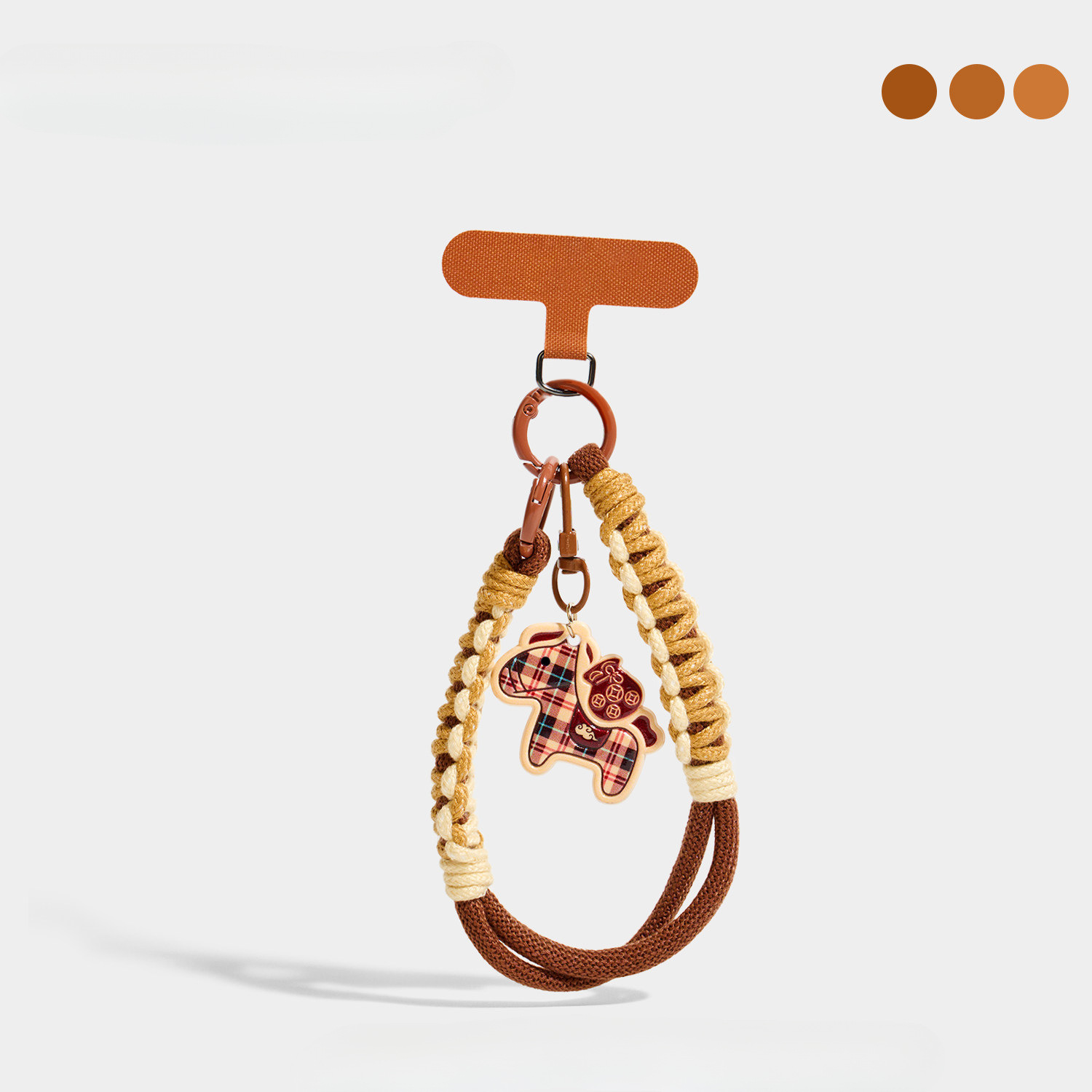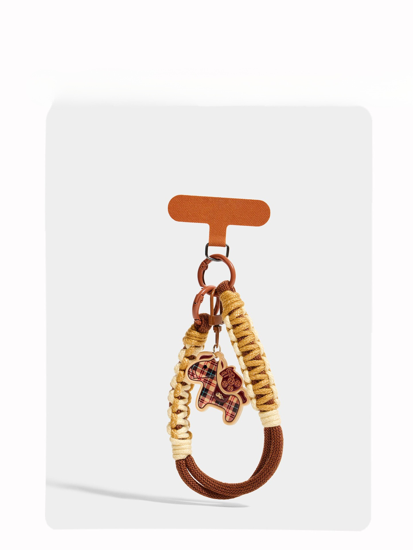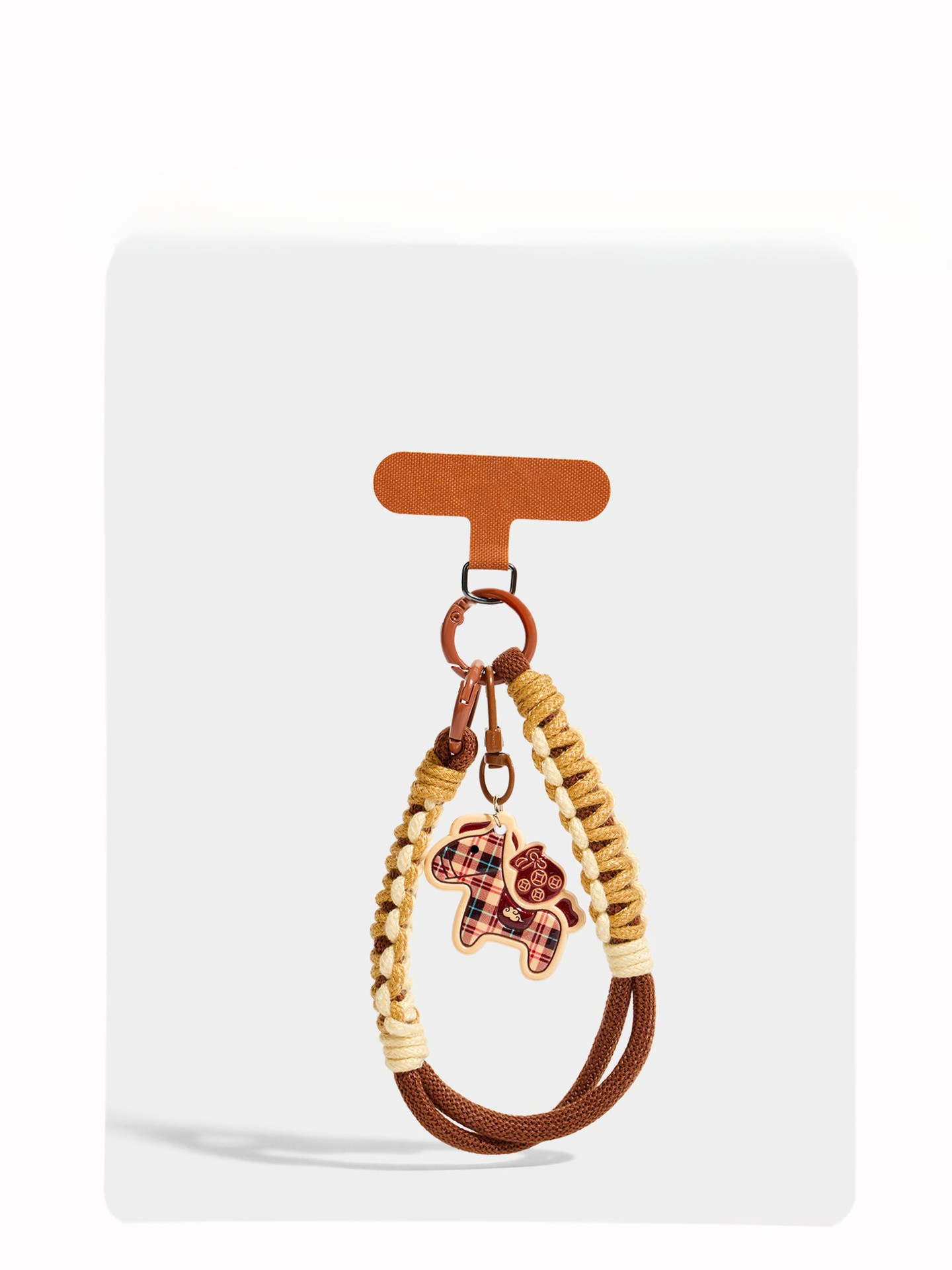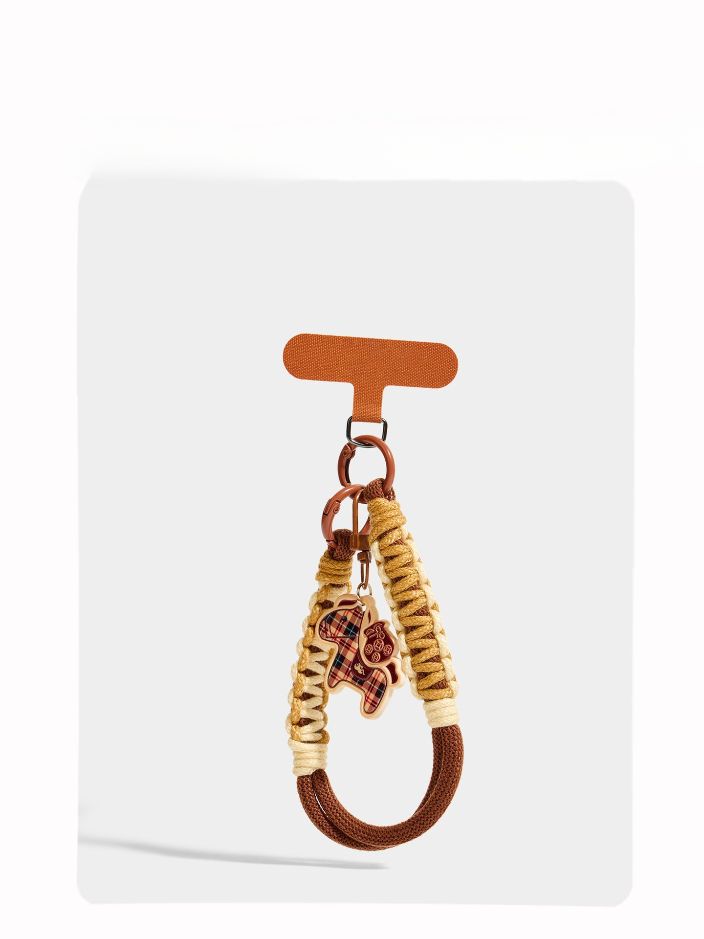 plaid pony phone lanyard – t-clasp – coffee color