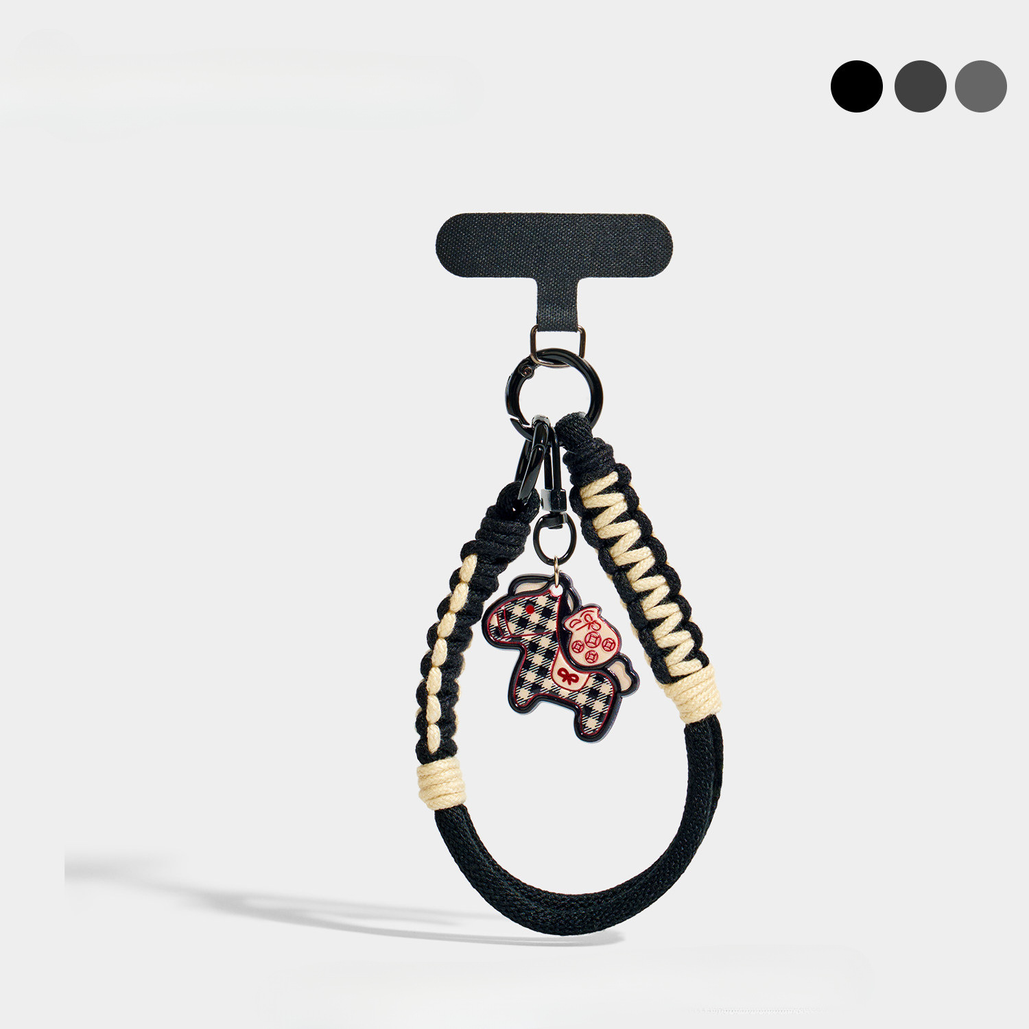 plaid pony phone lanyard – t-clasp – black