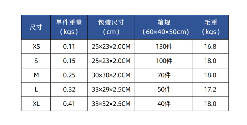 | extra small | CN¥ 18.8 |