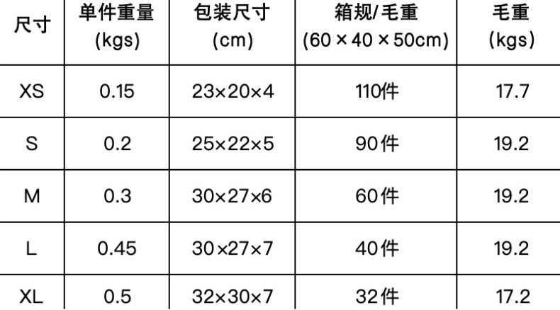 xs,s,m,l,xl