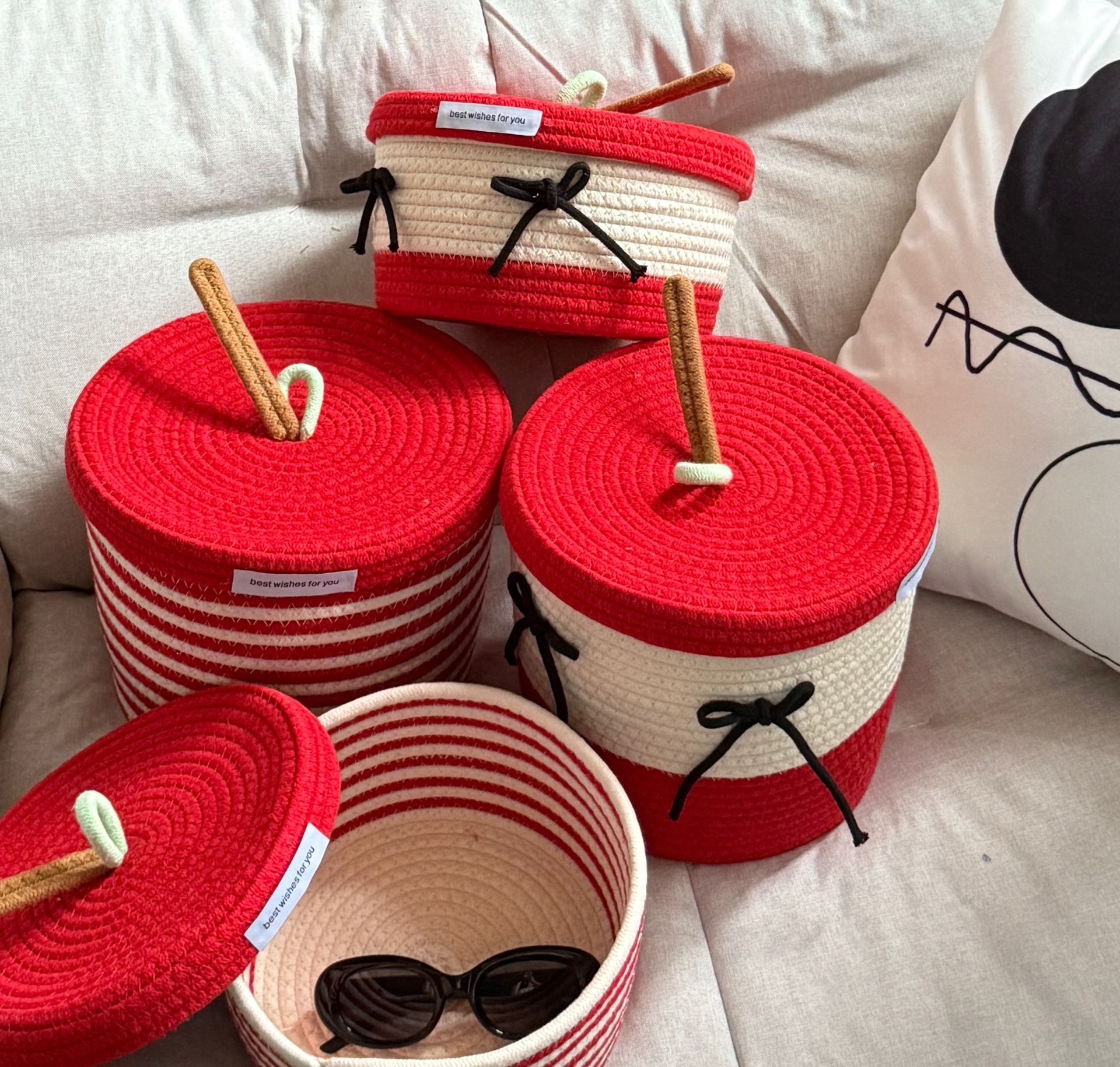 striped cover + black bow large size 22 * 19cm