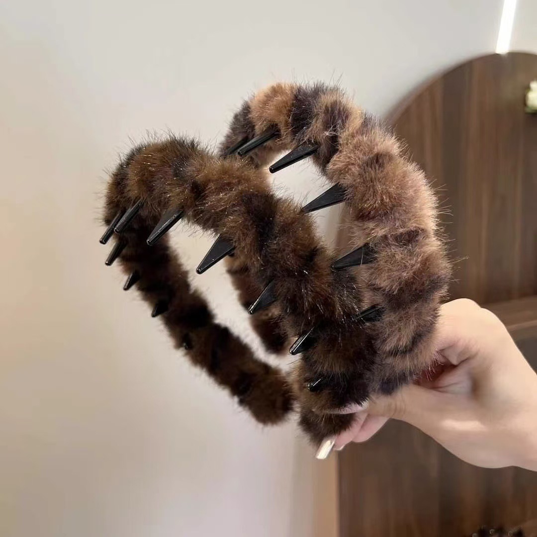 leopard-print plush wrapped headband – dark coffee
