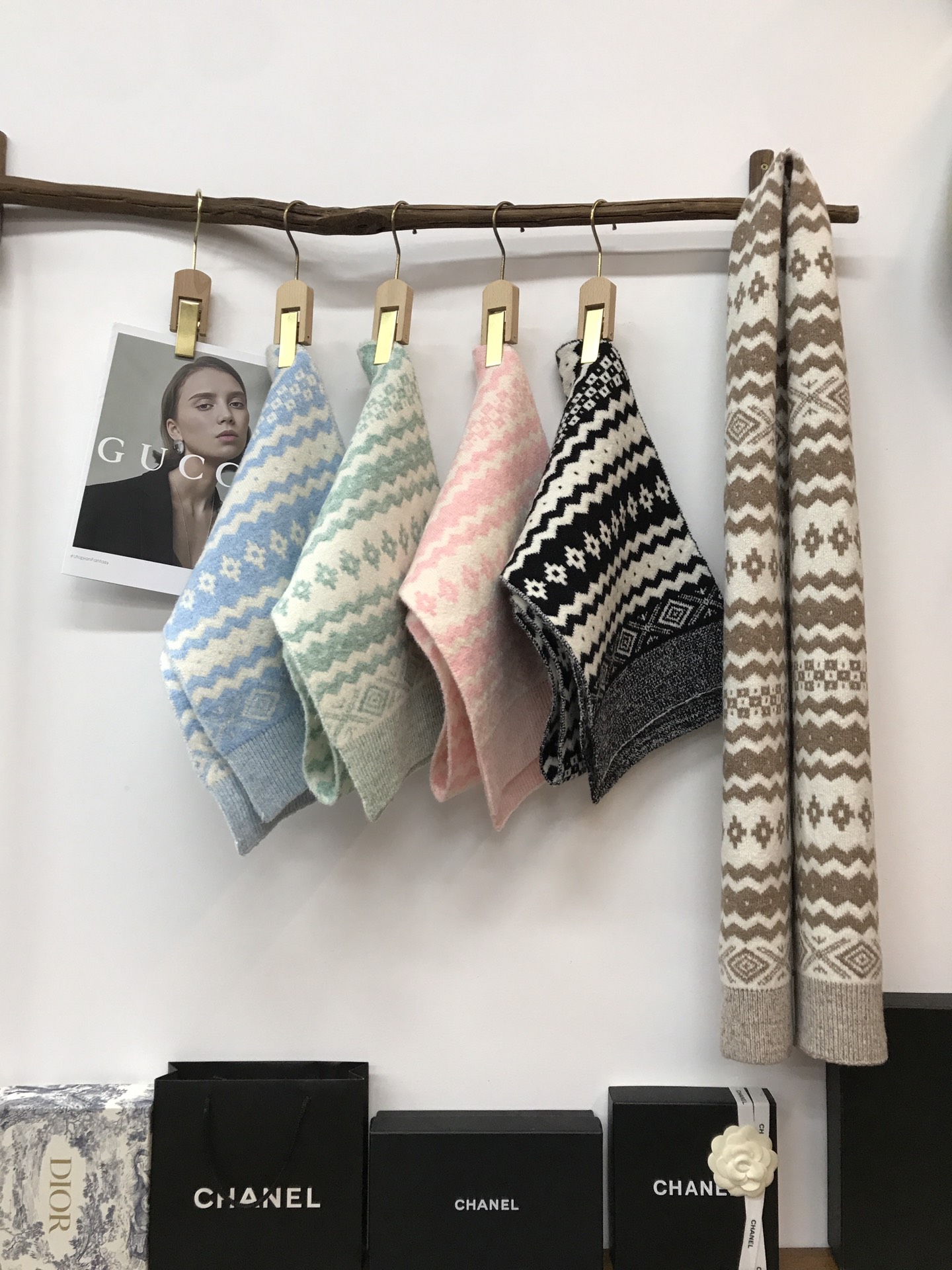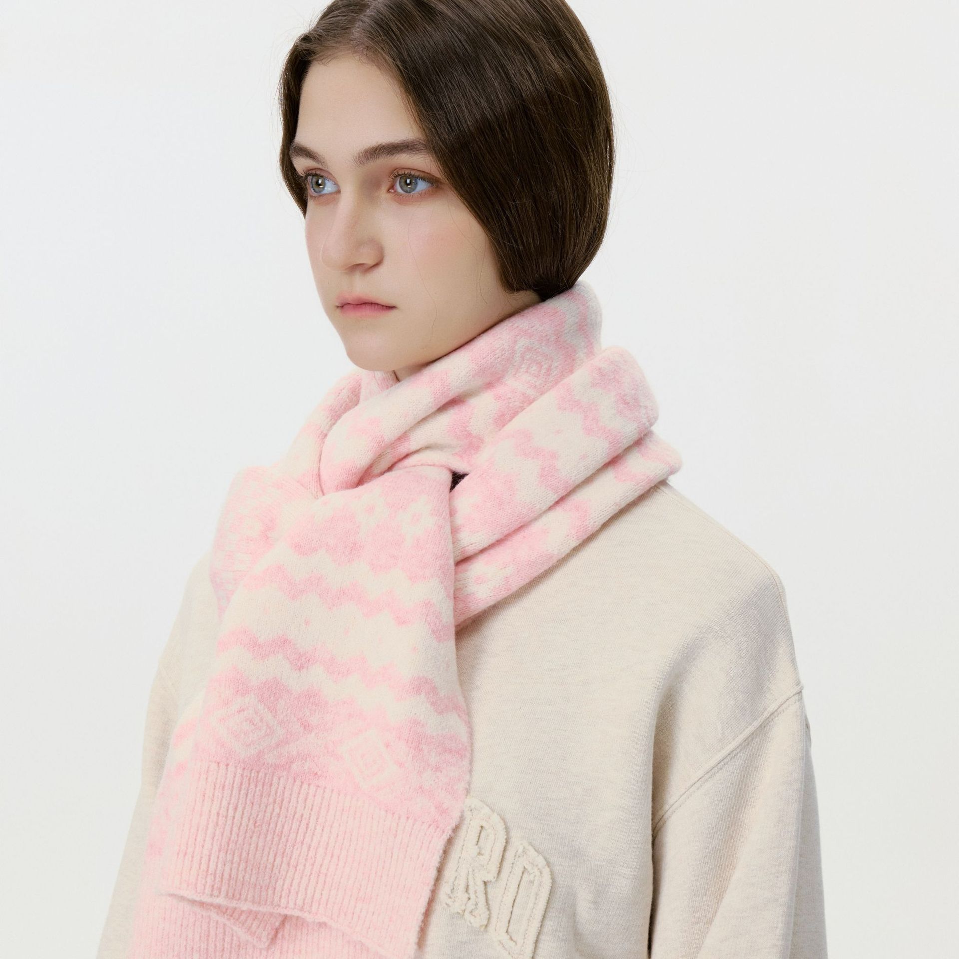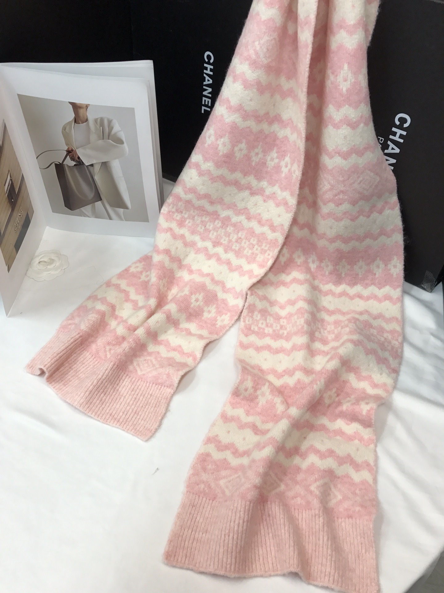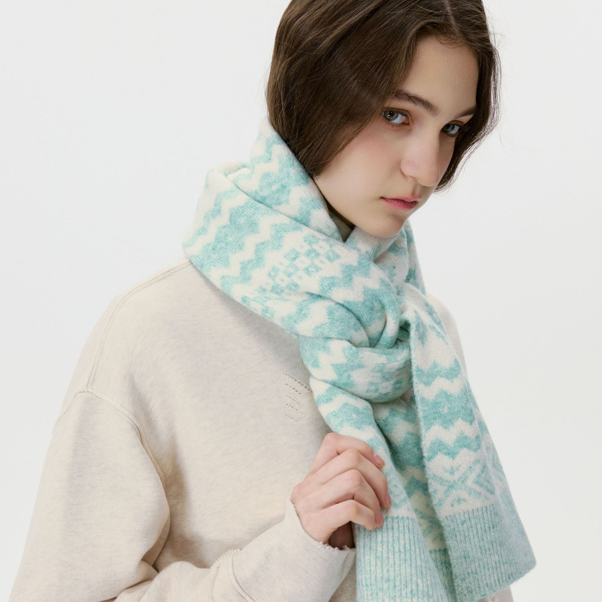 New model, in stock, Fair Isle wool knit, material: 10% wool, nylon, acrylic, polyester blend, size: 30*180, weight: 240g, item number: 04190350