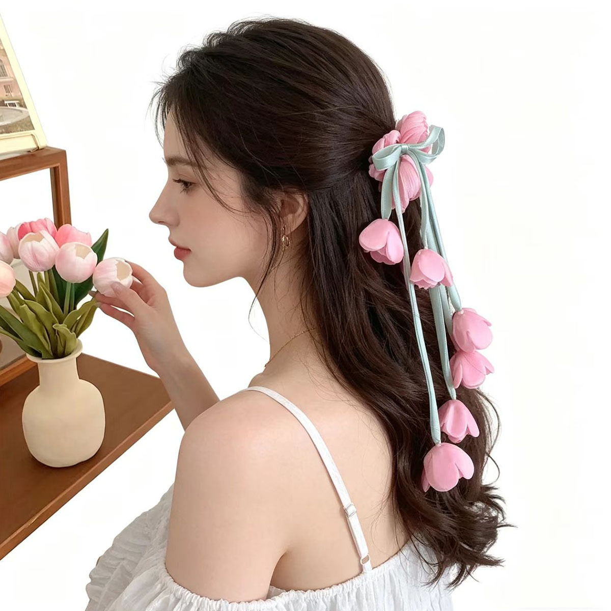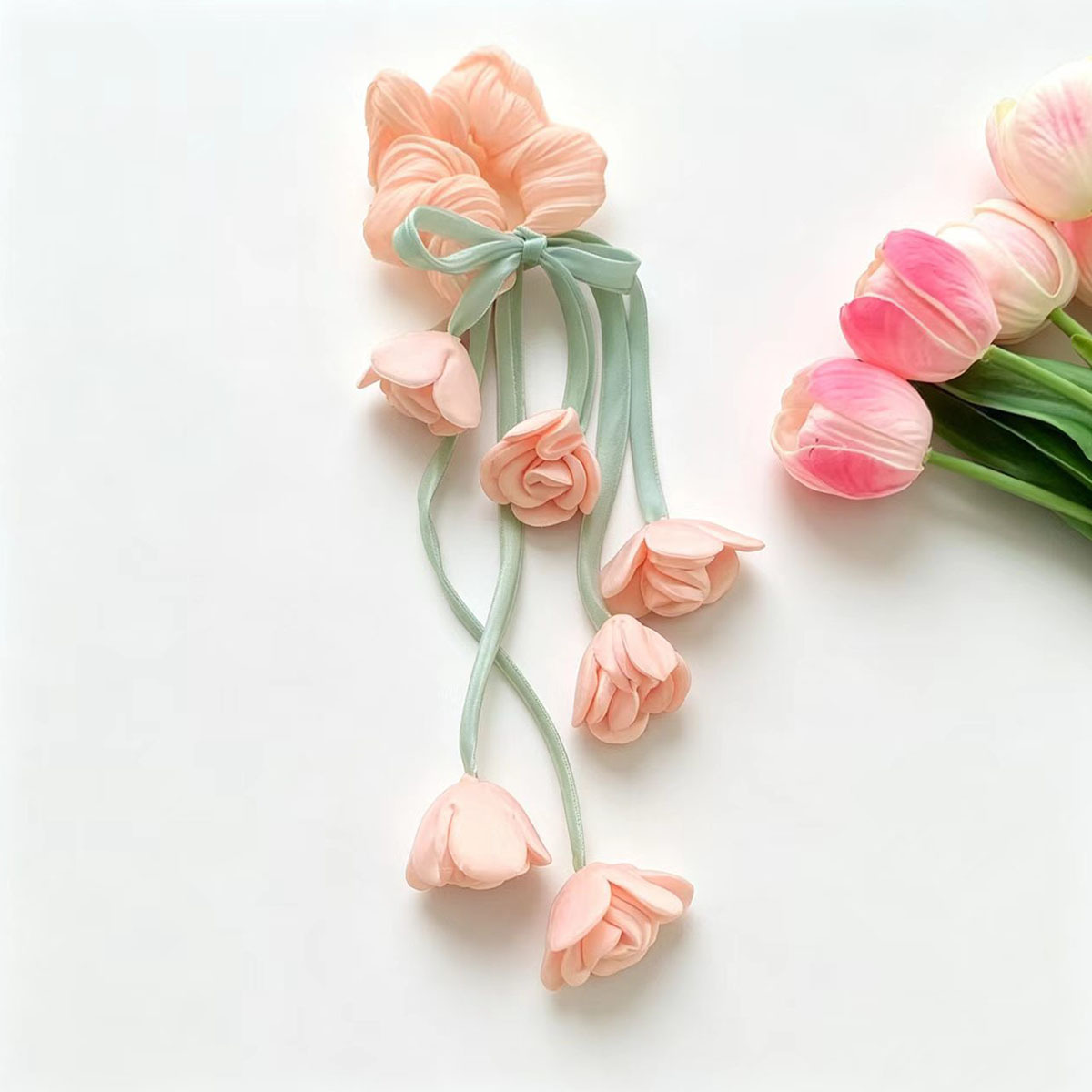 ribbon tulip hair tie, pink