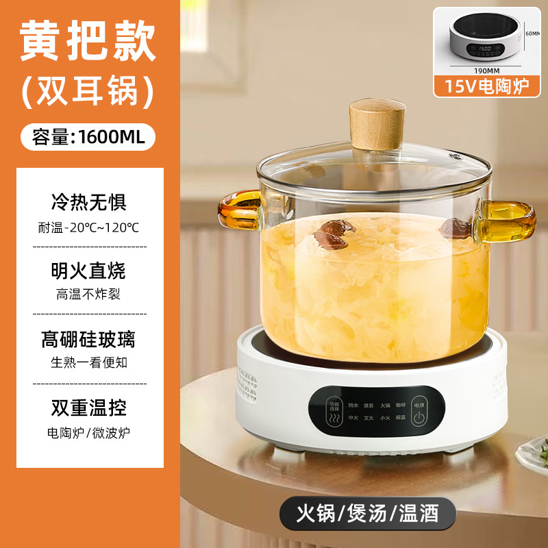 yellow-handled glass pot 1.6l + white electric ceramic stove