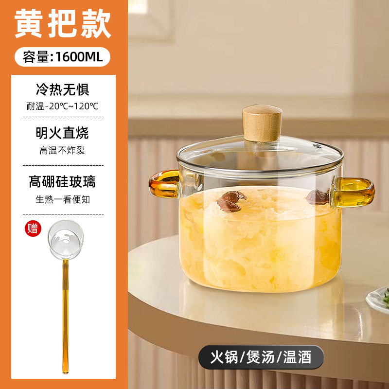yellow-handled glass pot 1.6l (can be heated on open flame/induction cooktop)