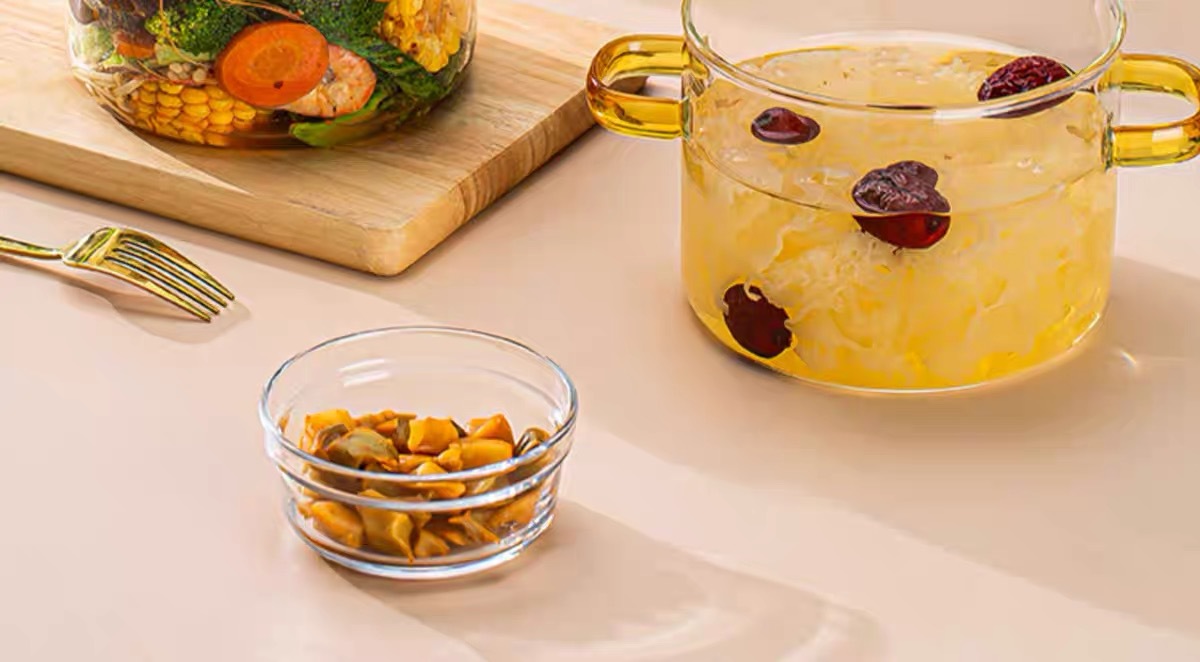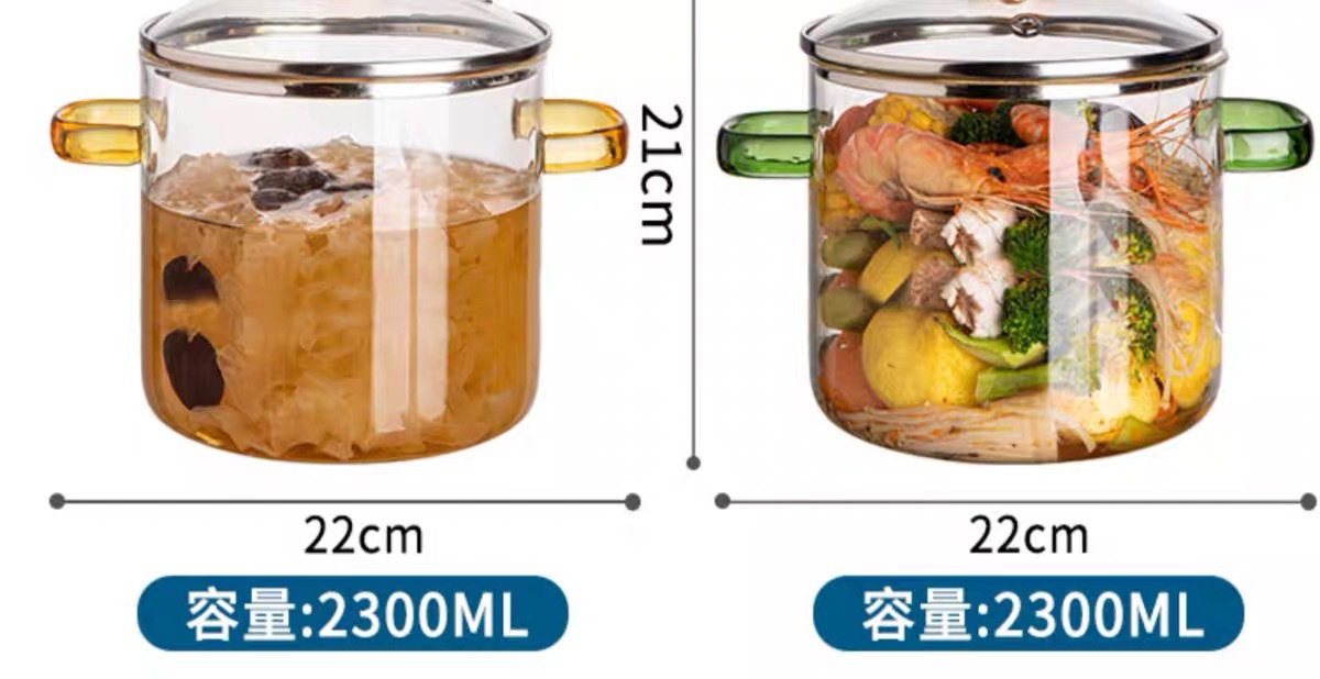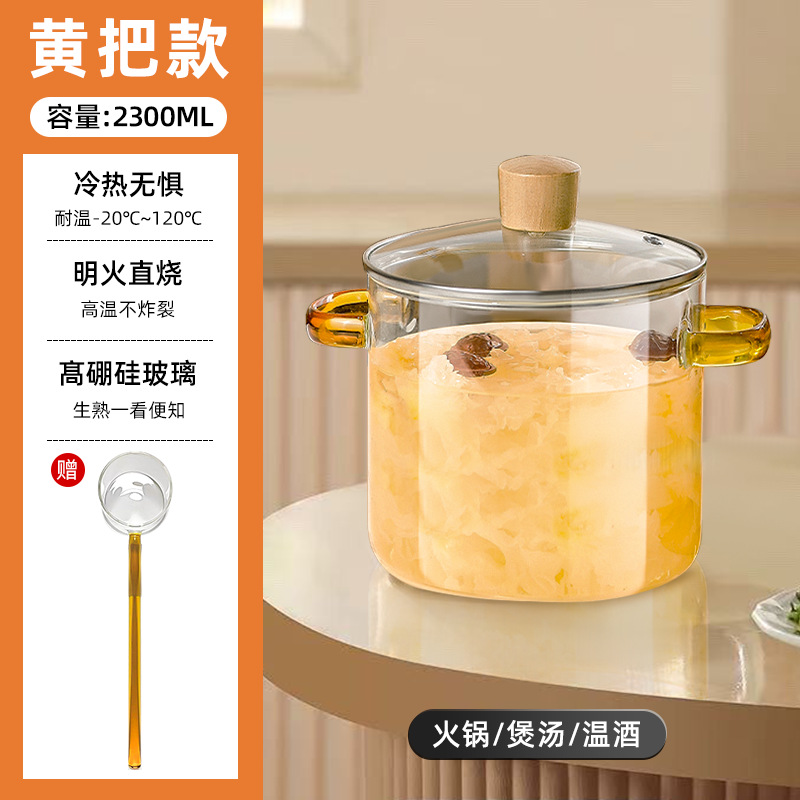yellow-handled glass pot 2.3l (can be heated on open flame/induction cooktop)