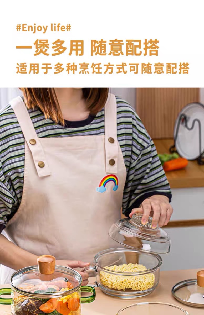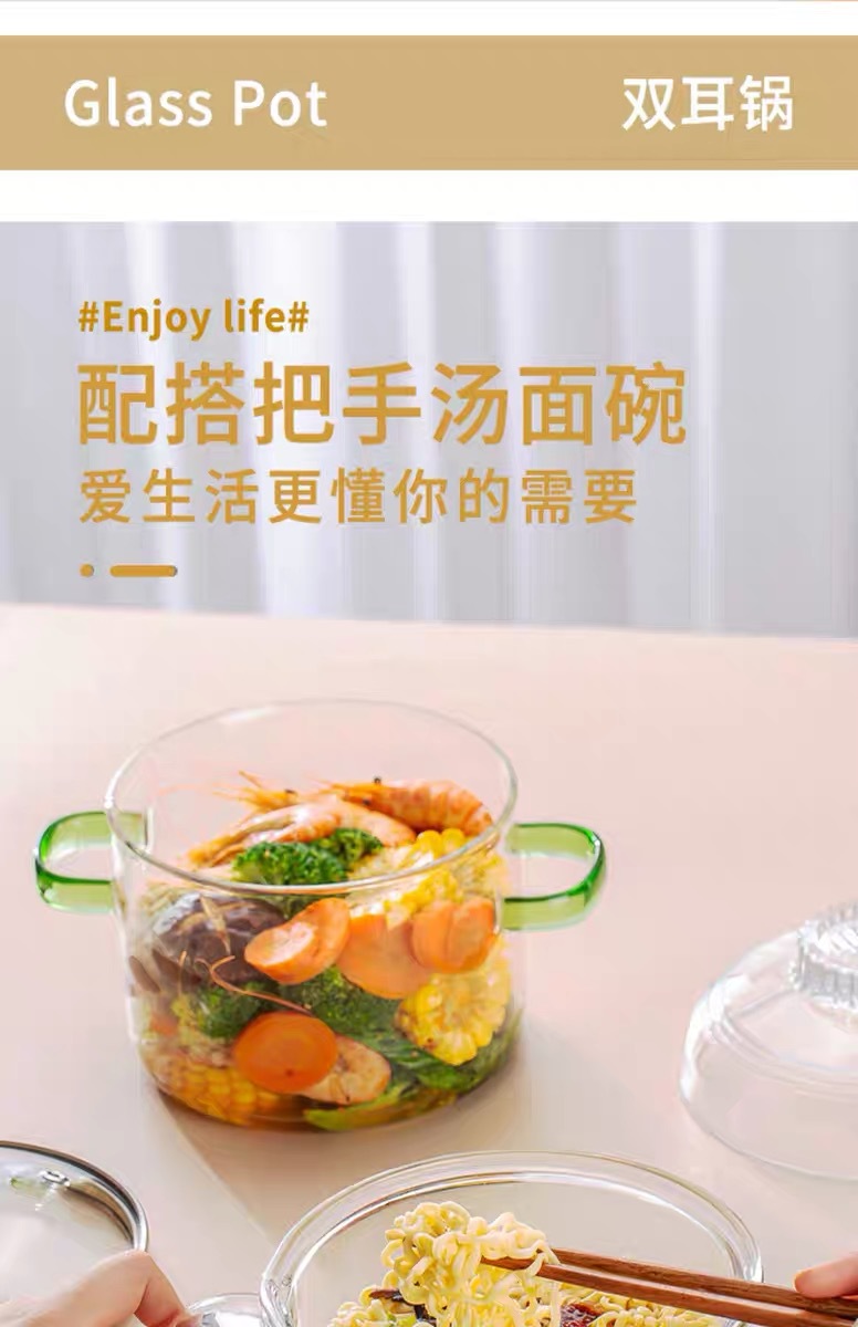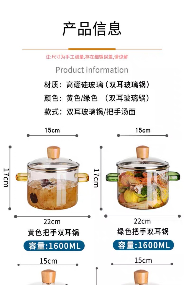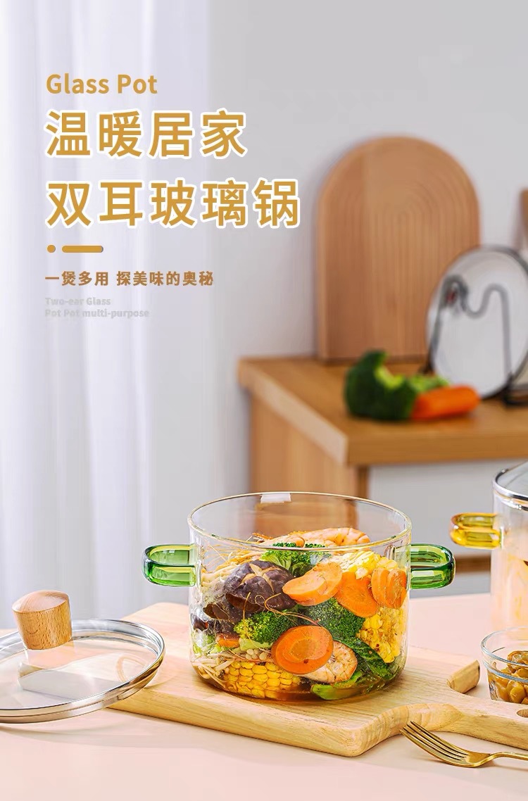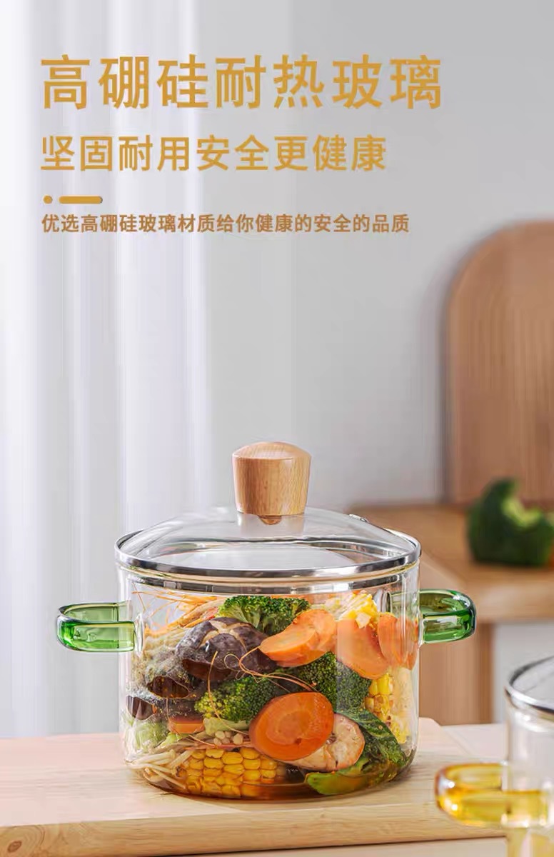 green-handled glass pot 1.6l (can be heated on open flame/induction cooktop)
