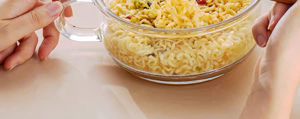 yellow-handled glass pot 1.6l + yellow glass spoon (can be heated on open flame/induction cooktop)