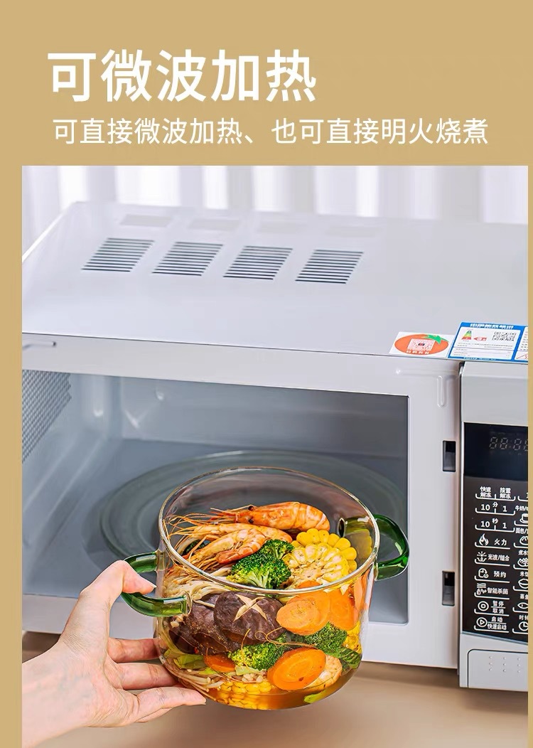 green-handled glass pot 2.3l (can be heated on open flame/induction cooktop)