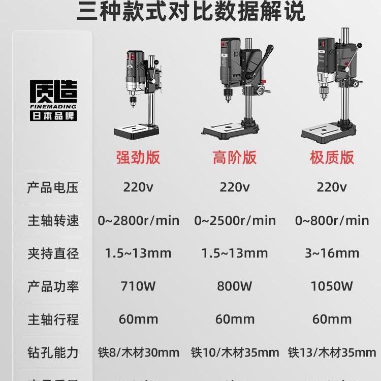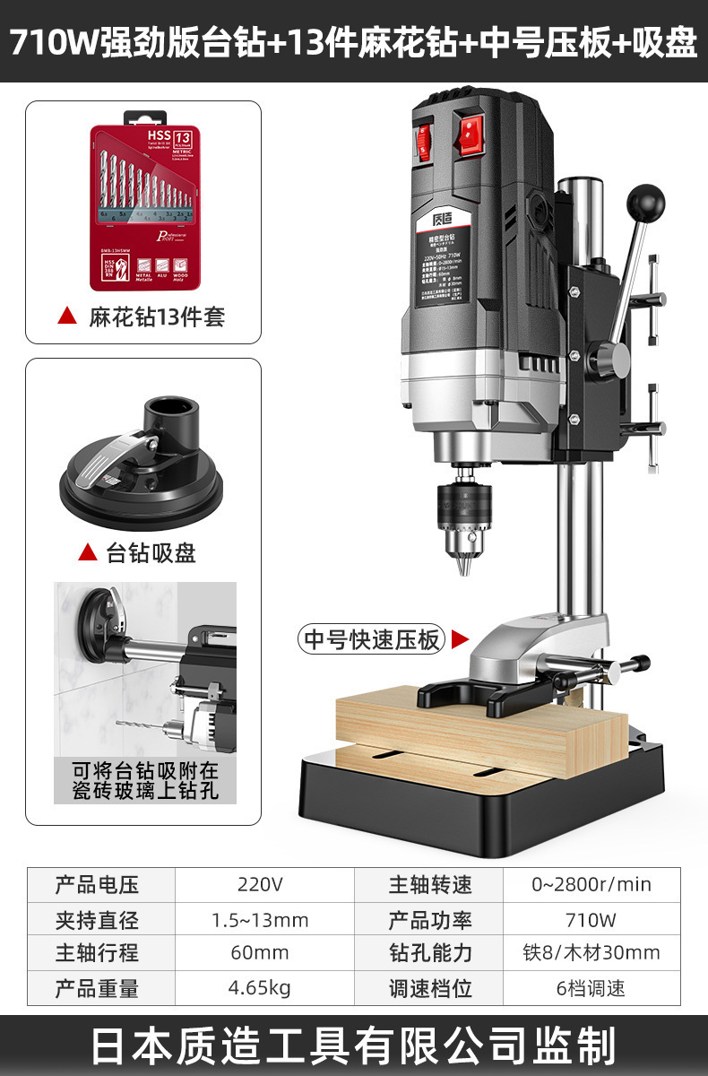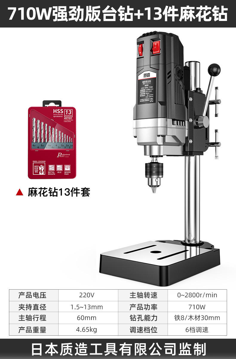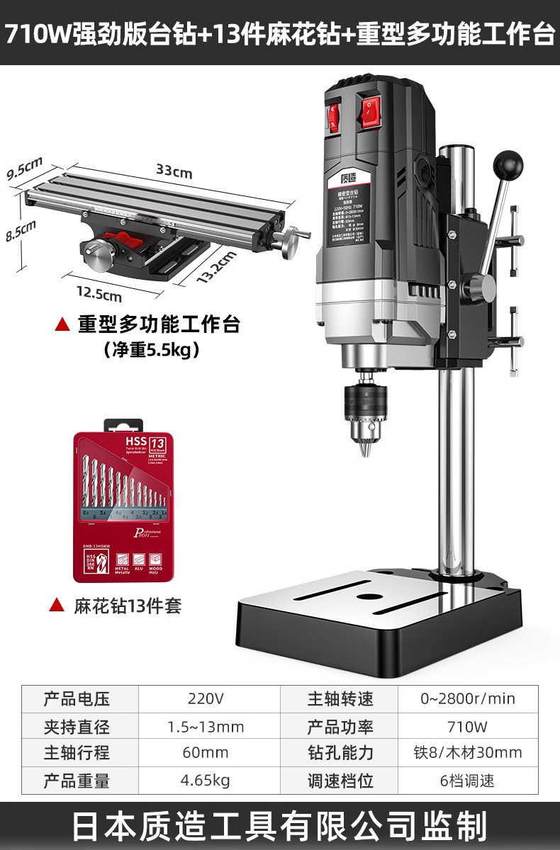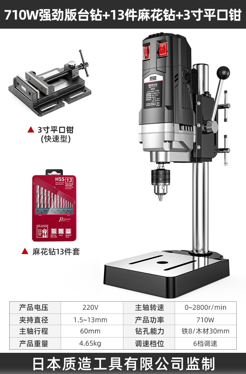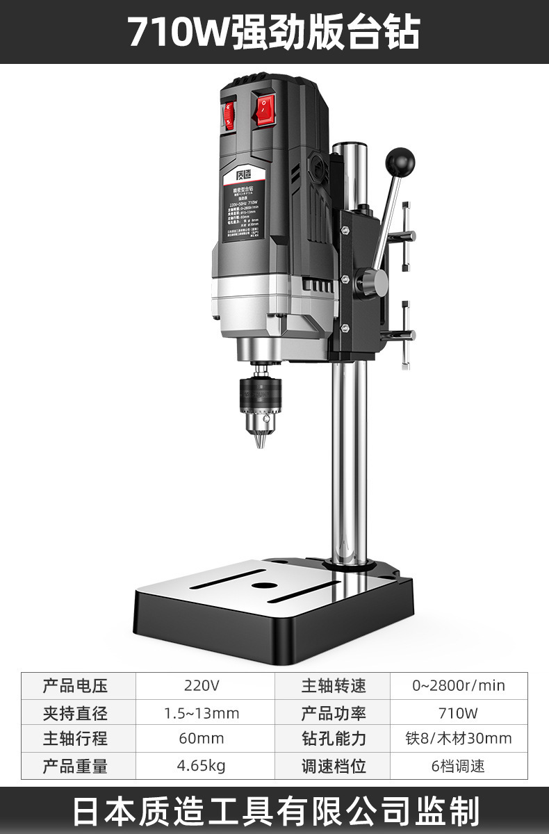 【钻铣两用】710W强劲版台钻