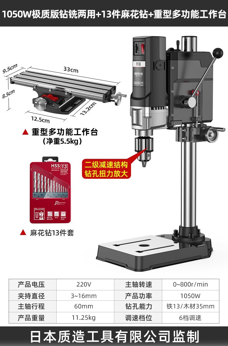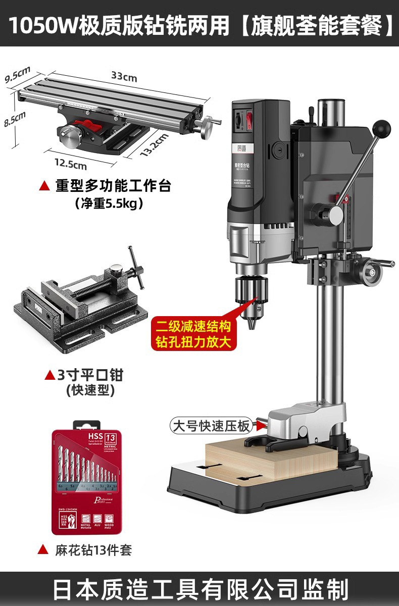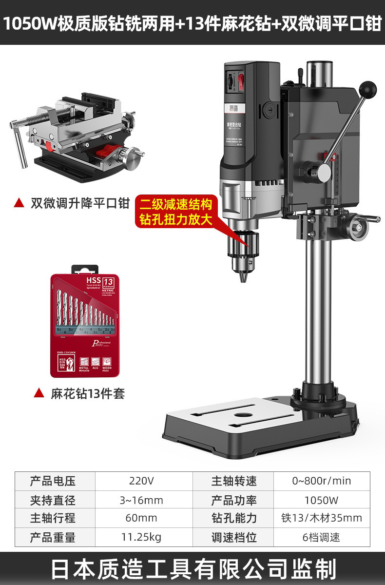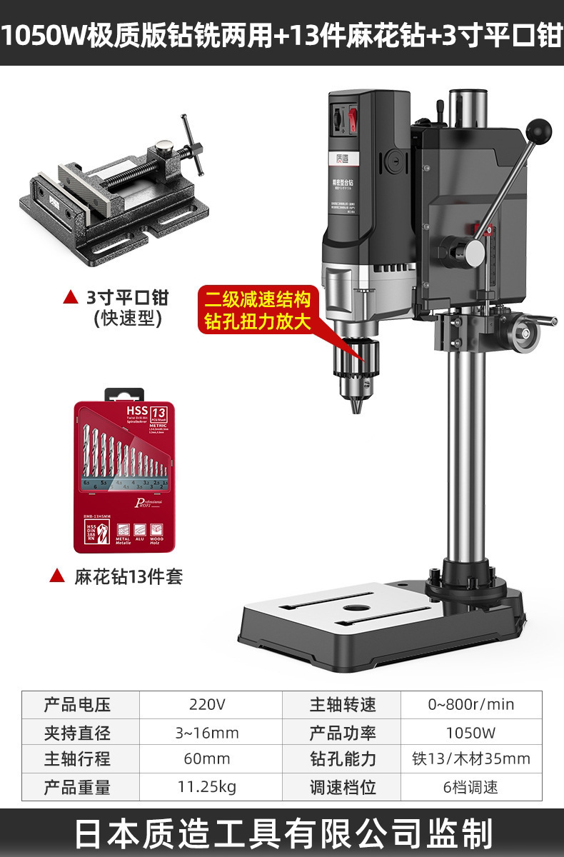【钻铣两用】1050W极质版+双微调平口钳+13件套麻花钻