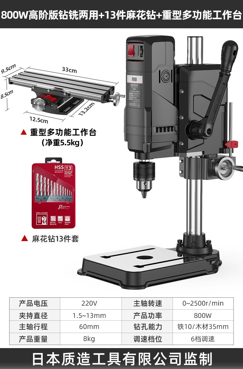 【钻铣两用】800W高阶版+重型多功能工作台+13件套麻花