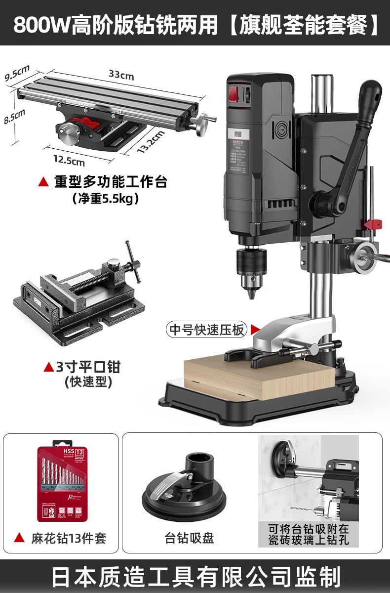 【钻铣两用】800W高阶版+平口钳+13件套麻花钻