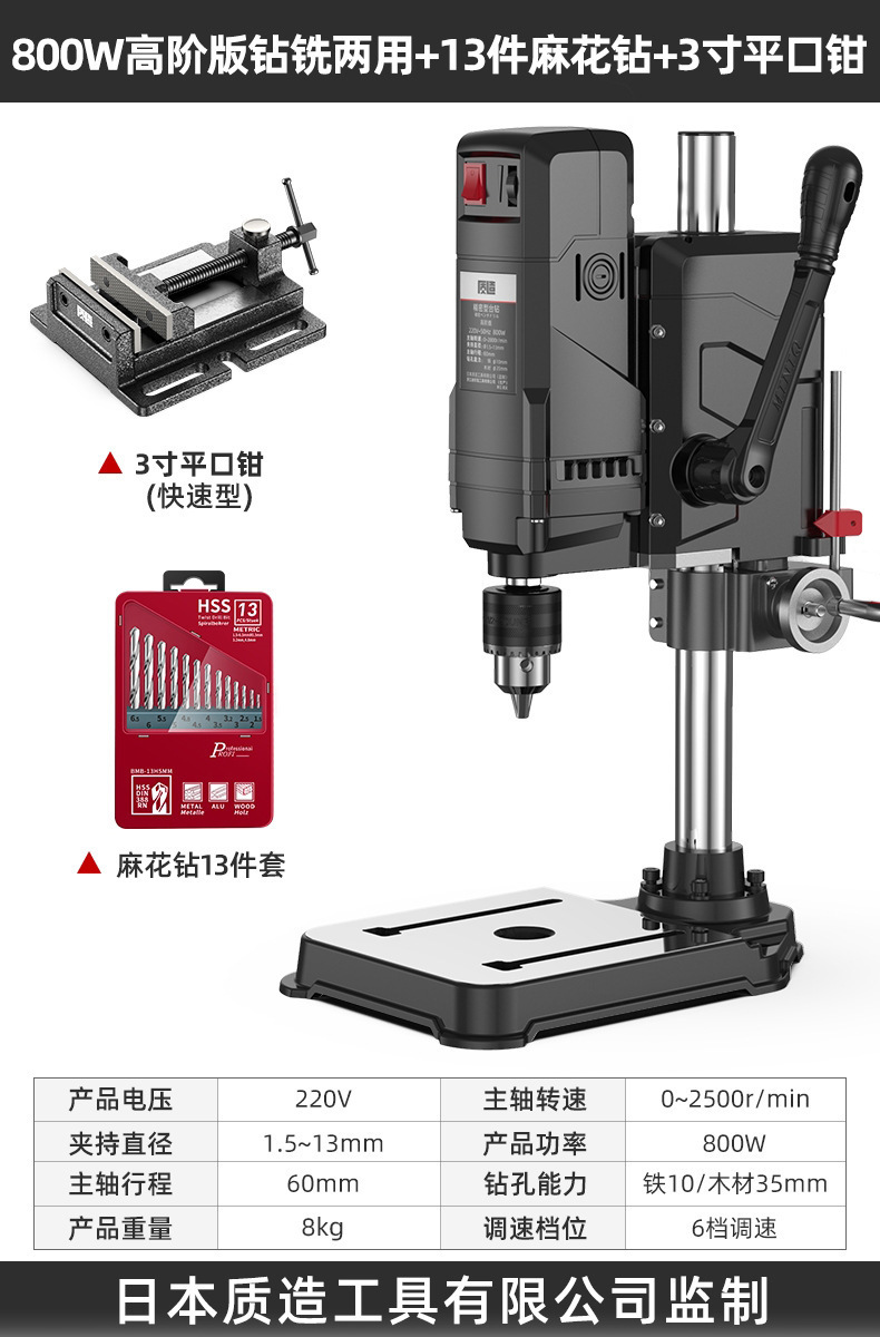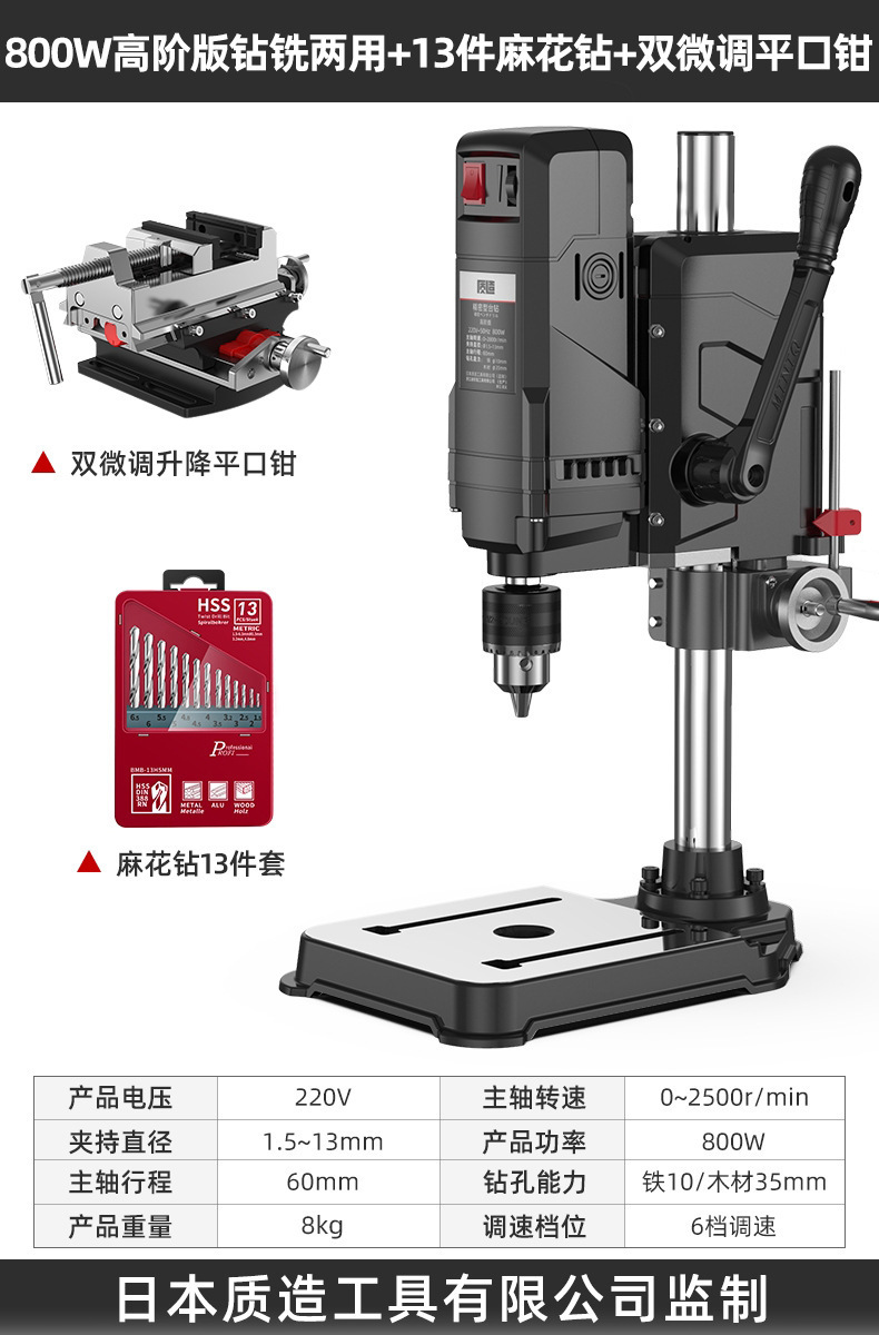 【钻铣两用】800W高阶版+双微调平口钳+13件套麻花钻
