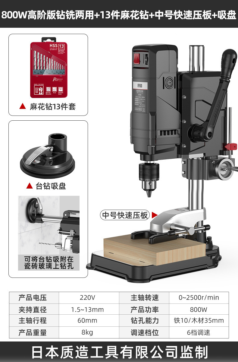 【钻铣两用】800W高阶版+吸盘+中号压板+13件套麻花钻