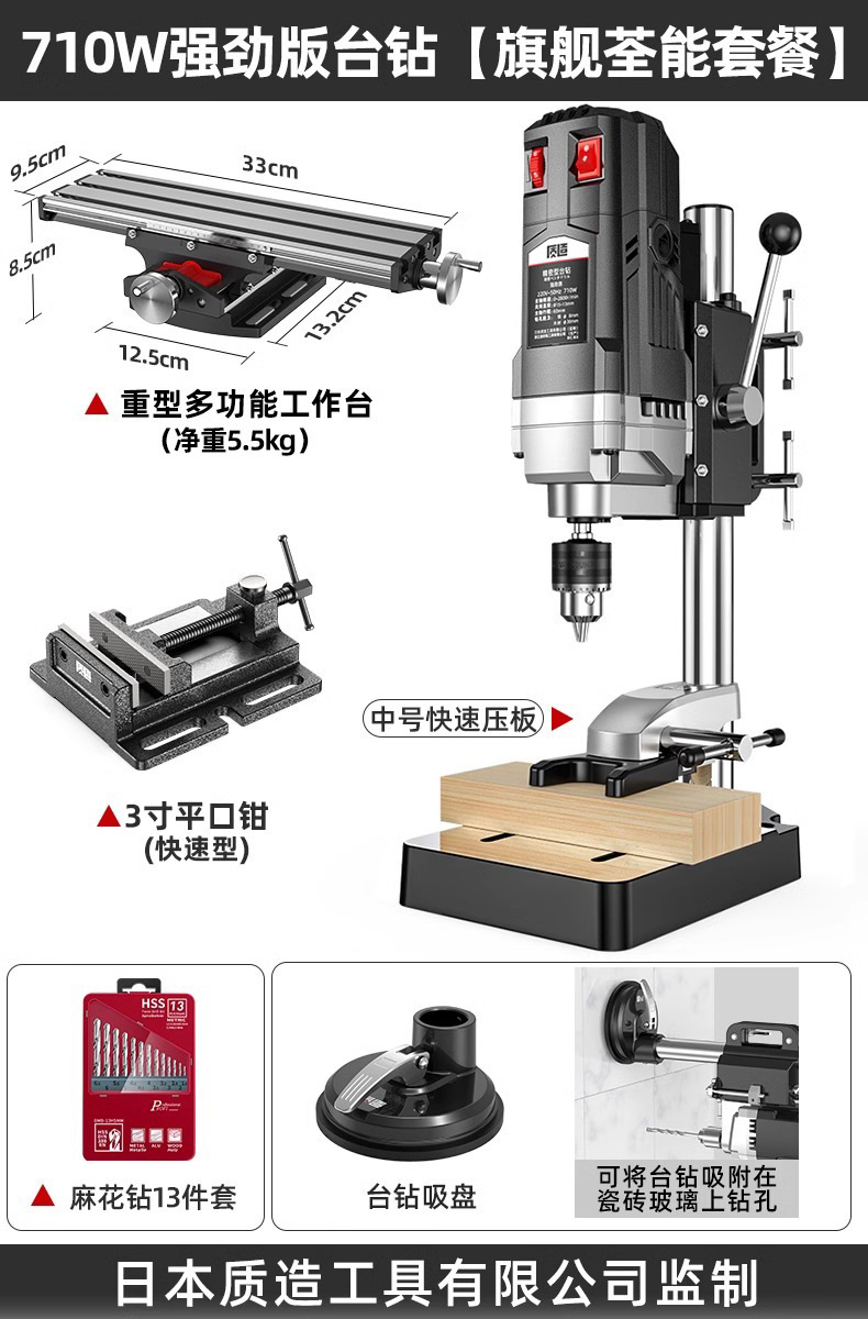 【钻铣两用】710W强劲版+吸盘+中号压板+13件套麻花钻