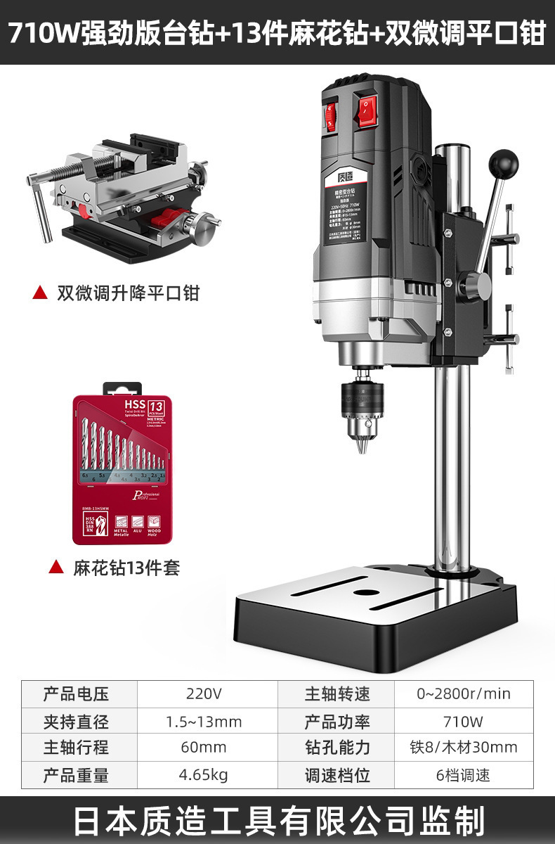 【钻铣两用】710W强劲版+双微调平口钳+13件套麻花钻