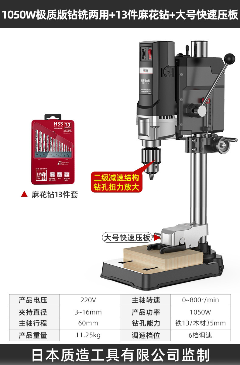 【钻铣两用】1050W极质版台钻