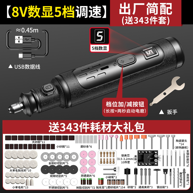 8V数显五档调速【出厂简配】+343件套