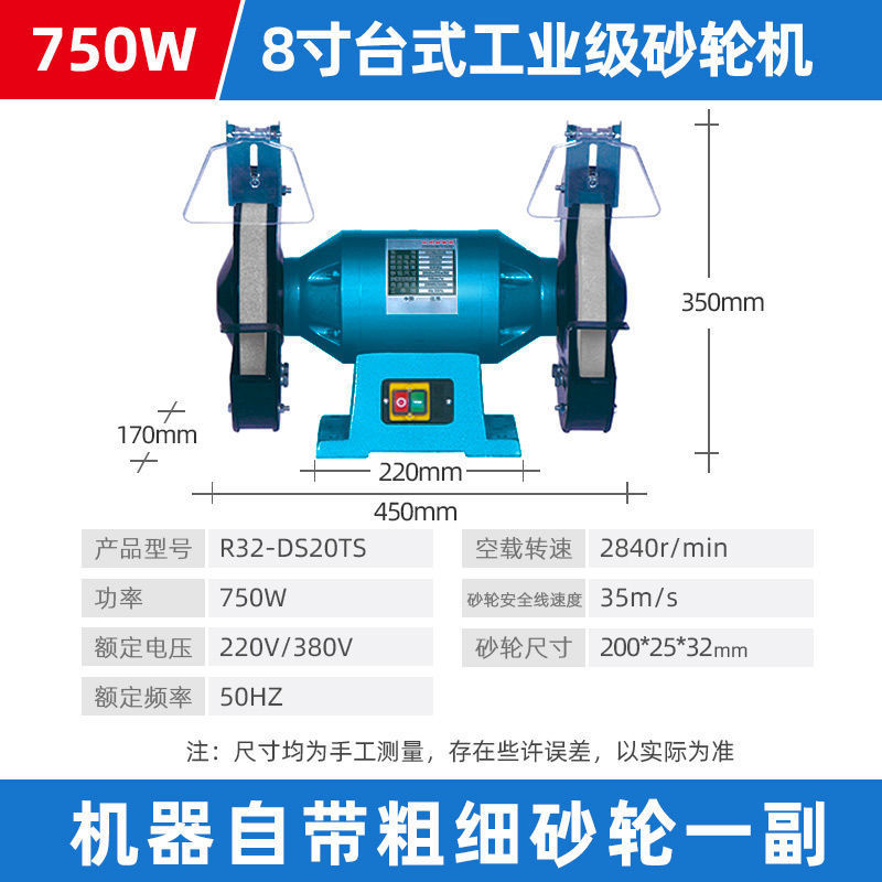 台式8寸工业级砂轮机750W220V/380V