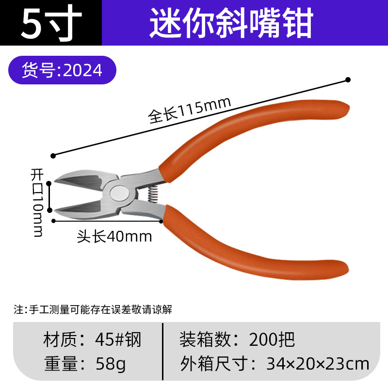 5寸迷你斜口钳,58g,200把/箱