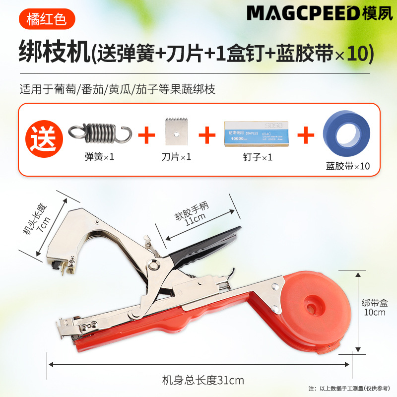 进口款【橘红】绑枝机+1盒钉子+10PC蓝绑带