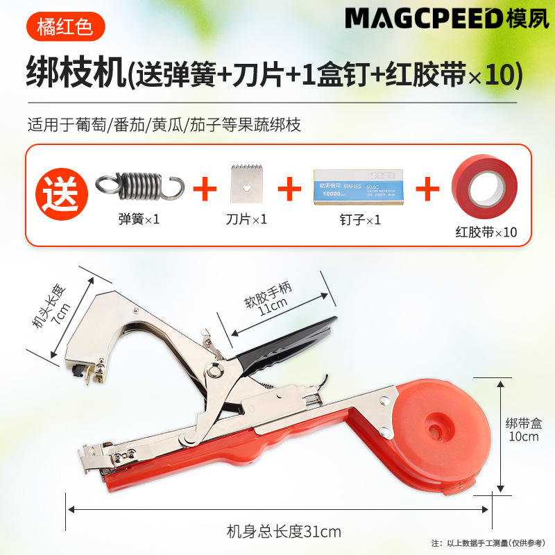进口款【橘红】绑枝机+1盒钉子+10PC红绑带