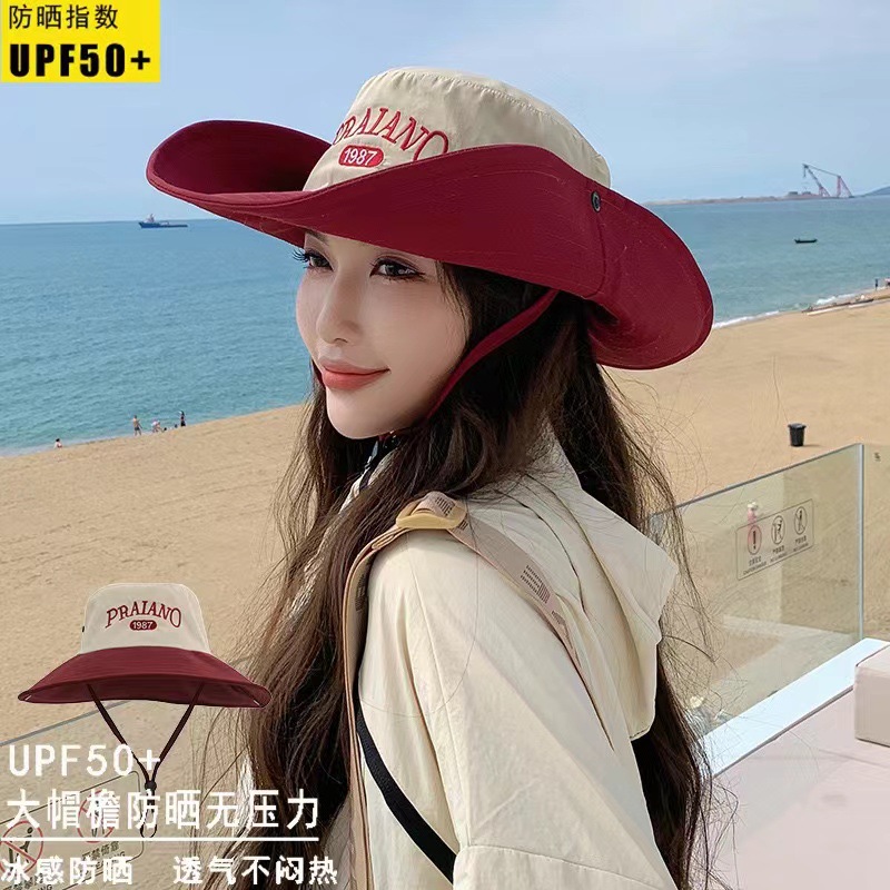 praian1987 big brim fisherman hat-[beige red