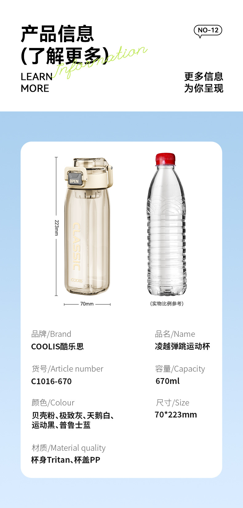 material: tritan, food grade pp