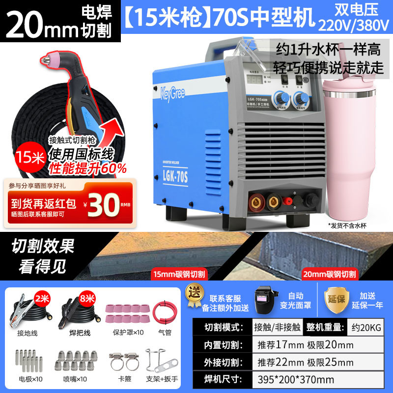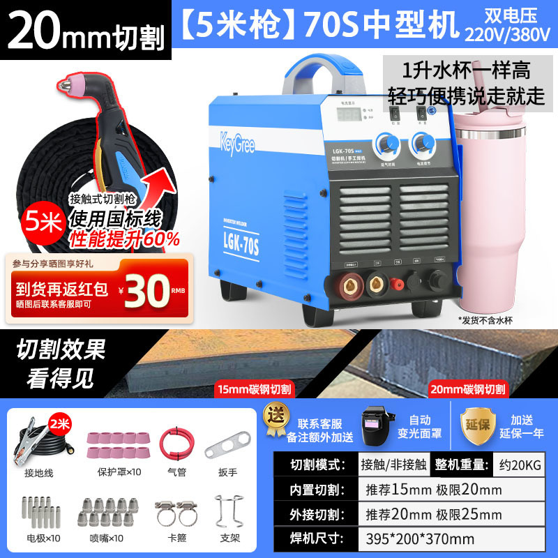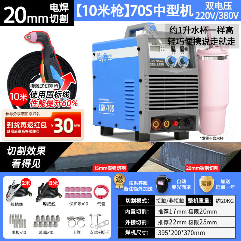 切割厚度20mm+电焊【70】双电压10米枪-源于欧洲无需空压机接电即切割